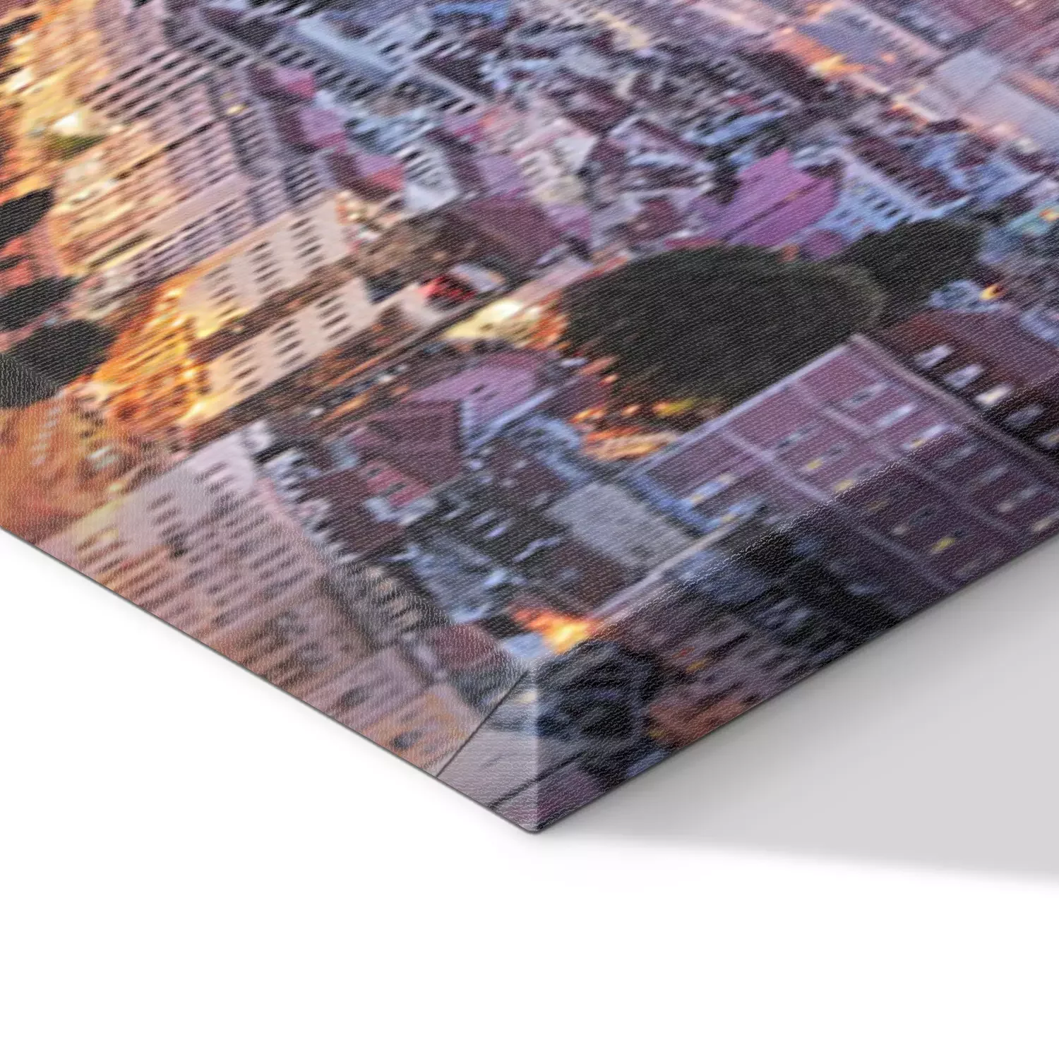 De print wordt aangebracht op hoogwaardig canvas dat op een schildersweefgetouw (spieraam) wordt gespannen. Omdat de print de zijranden bedekt, hoeft het ontwerp niet met een extra kader te worden omlijst. Wij raden ook composities aan die uit meerdere foto's bestaan en zo een coherente compositie vormen.