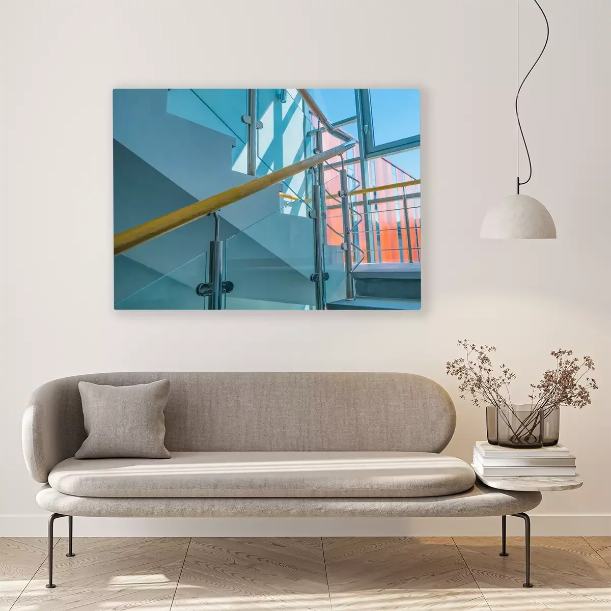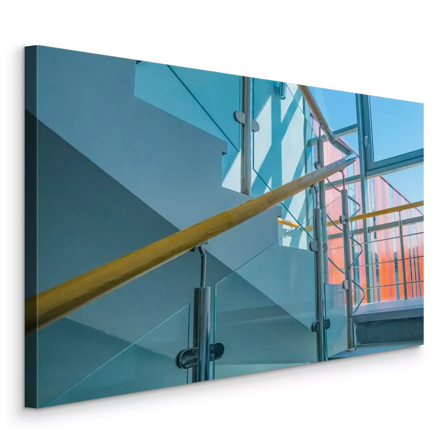 Canvas Stainless steel, glass and wood railing.Fall Protection. modern design of handrail and staircase