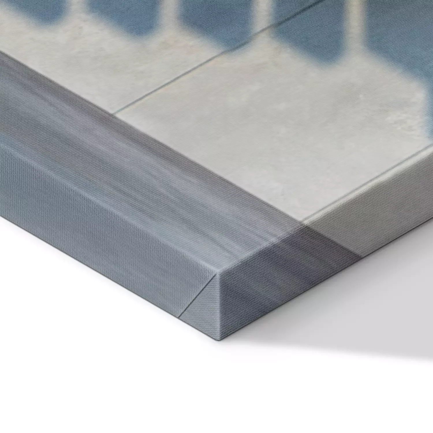 De print wordt aangebracht op hoogwaardig canvas dat op een schildersweefgetouw (spieraam) wordt gespannen. Omdat de print de zijranden bedekt, hoeft het ontwerp niet met een extra kader te worden omlijst. Wij raden ook composities aan die uit meerdere foto's bestaan en zo een coherente compositie vormen.