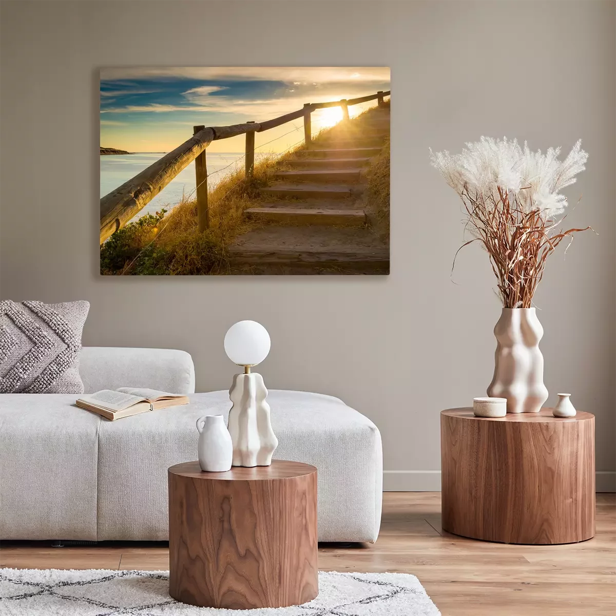 De print wordt aangebracht op hoogwaardig canvas dat op een schildersweefgetouw (spieraam) wordt gespannen. Omdat de print de zijranden bedekt, hoeft het ontwerp niet met een extra kader te worden omlijst. Wij raden ook composities aan die uit meerdere foto's bestaan en zo een coherente compositie vormen.
