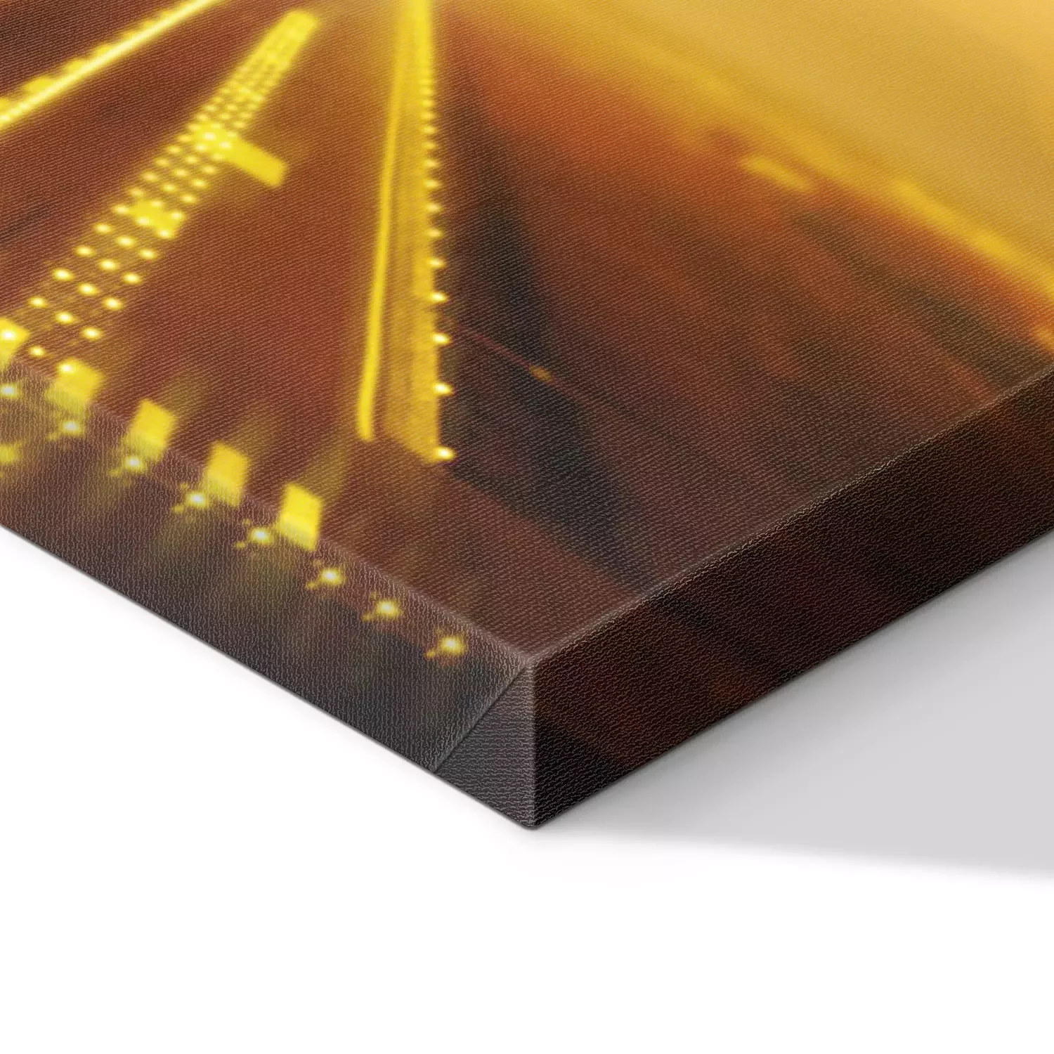 De print wordt aangebracht op hoogwaardig canvas dat op een schildersweefgetouw (spieraam) wordt gespannen. Omdat de print de zijranden bedekt, hoeft het ontwerp niet met een extra kader te worden omlijst. Wij raden ook composities aan die uit meerdere foto's bestaan en zo een coherente compositie vormen.