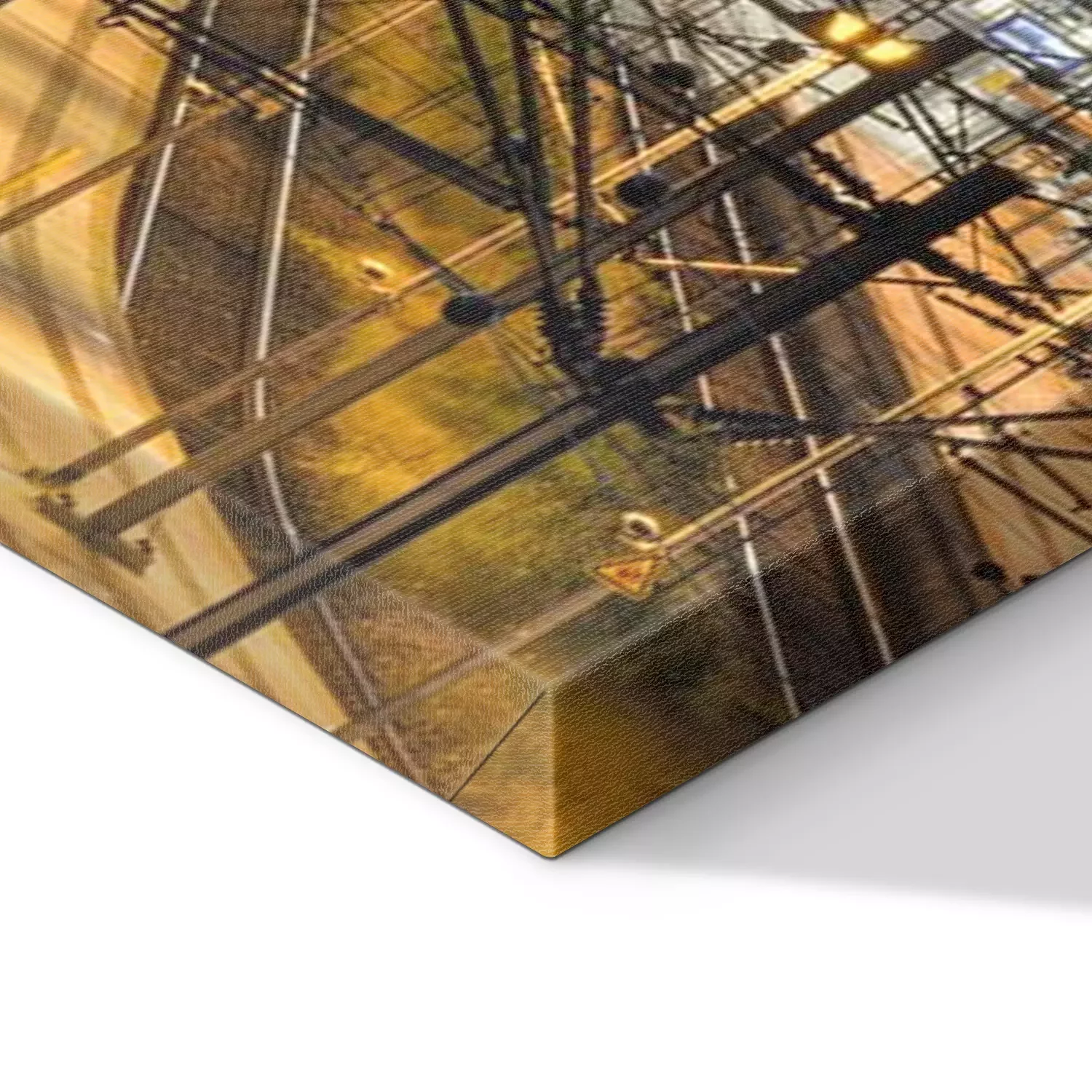 De print wordt aangebracht op hoogwaardig canvas dat op een schildersweefgetouw (spieraam) wordt gespannen. Omdat de print de zijranden bedekt, hoeft het ontwerp niet met een extra kader te worden omlijst. Wij raden ook composities aan die uit meerdere foto's bestaan en zo een coherente compositie vormen.