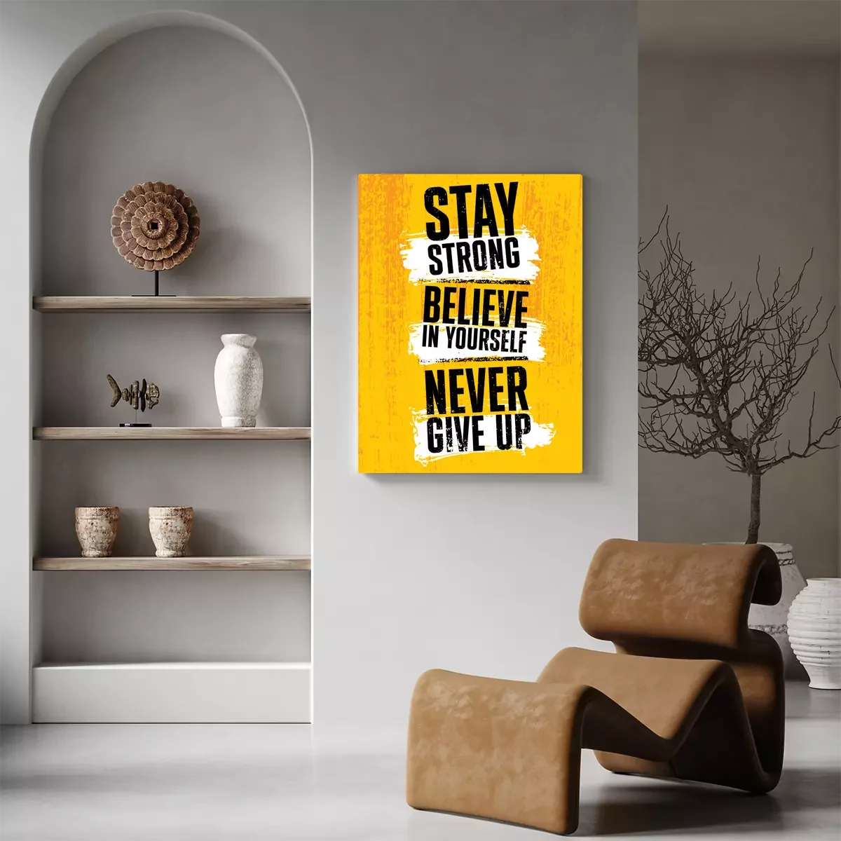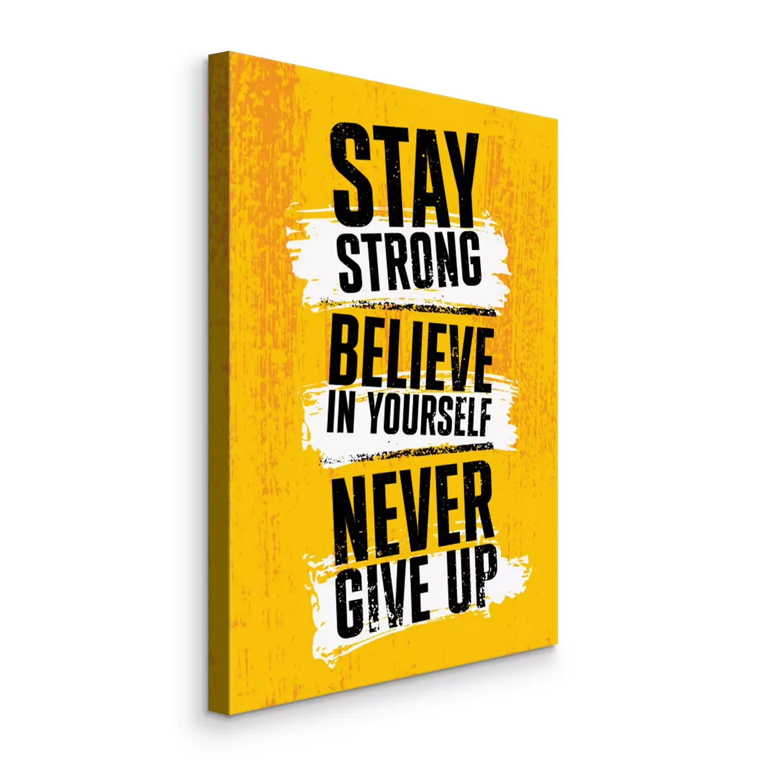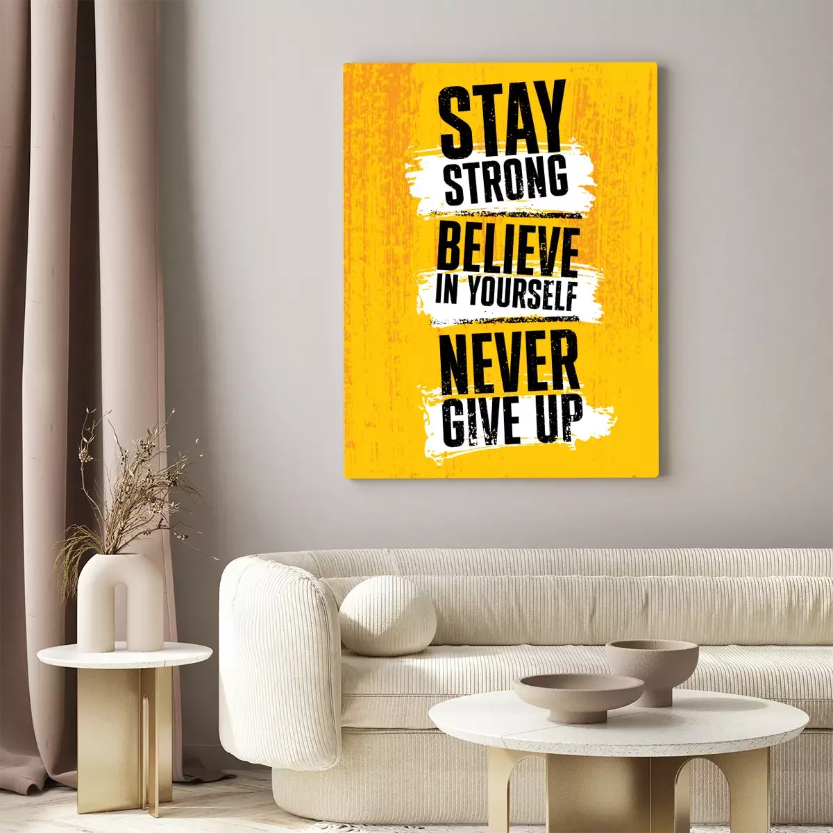 Canvas Stay Strong. Believe In Yourself. Never Give Up. Inspiring typography motivation quote banner on textured background.