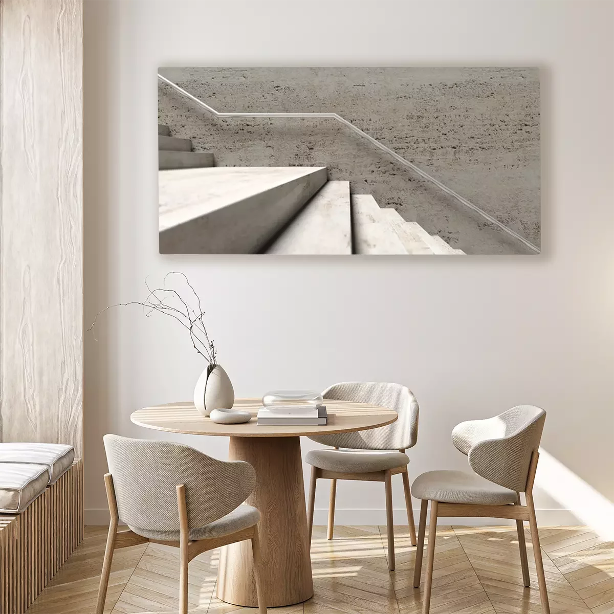 De print wordt aangebracht op hoogwaardig canvas dat op een schildersweefgetouw (spieraam) wordt gespannen. Omdat de print de zijranden bedekt, hoeft het ontwerp niet met een extra kader te worden omlijst. Wij raden ook composities aan die uit meerdere foto's bestaan en zo een coherente compositie vormen.