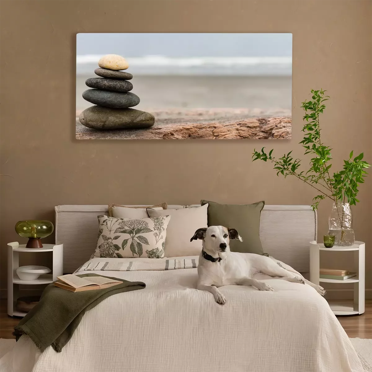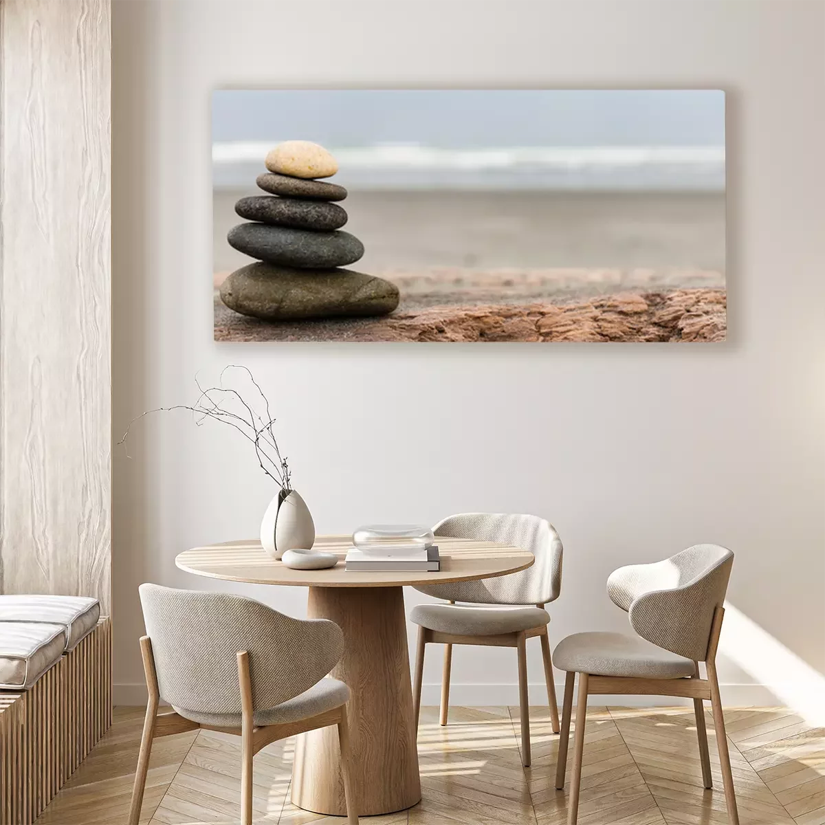 Canvas Stein Stapel op het strand Panorama