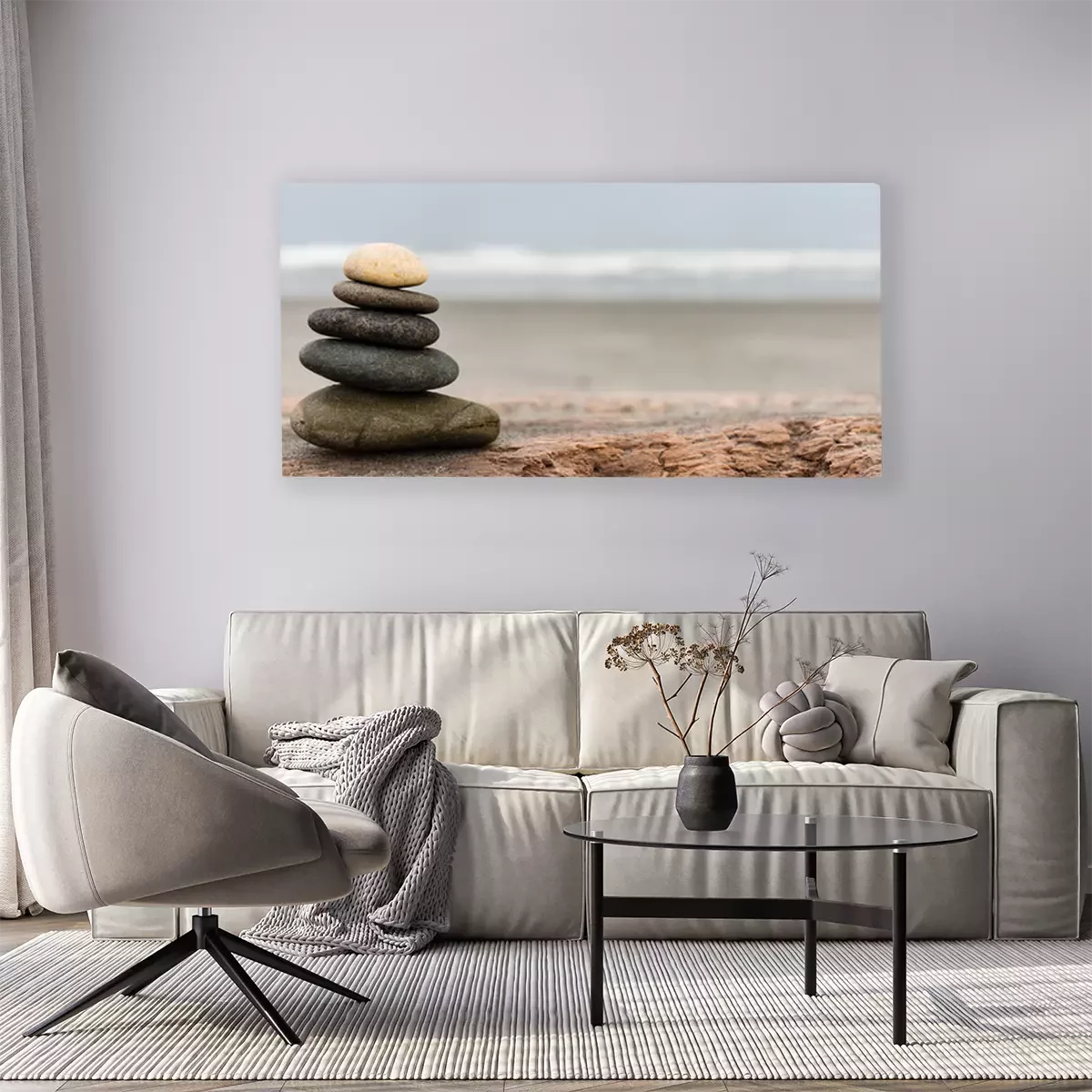 Canvas: Stein Stapel op het strand Panorama