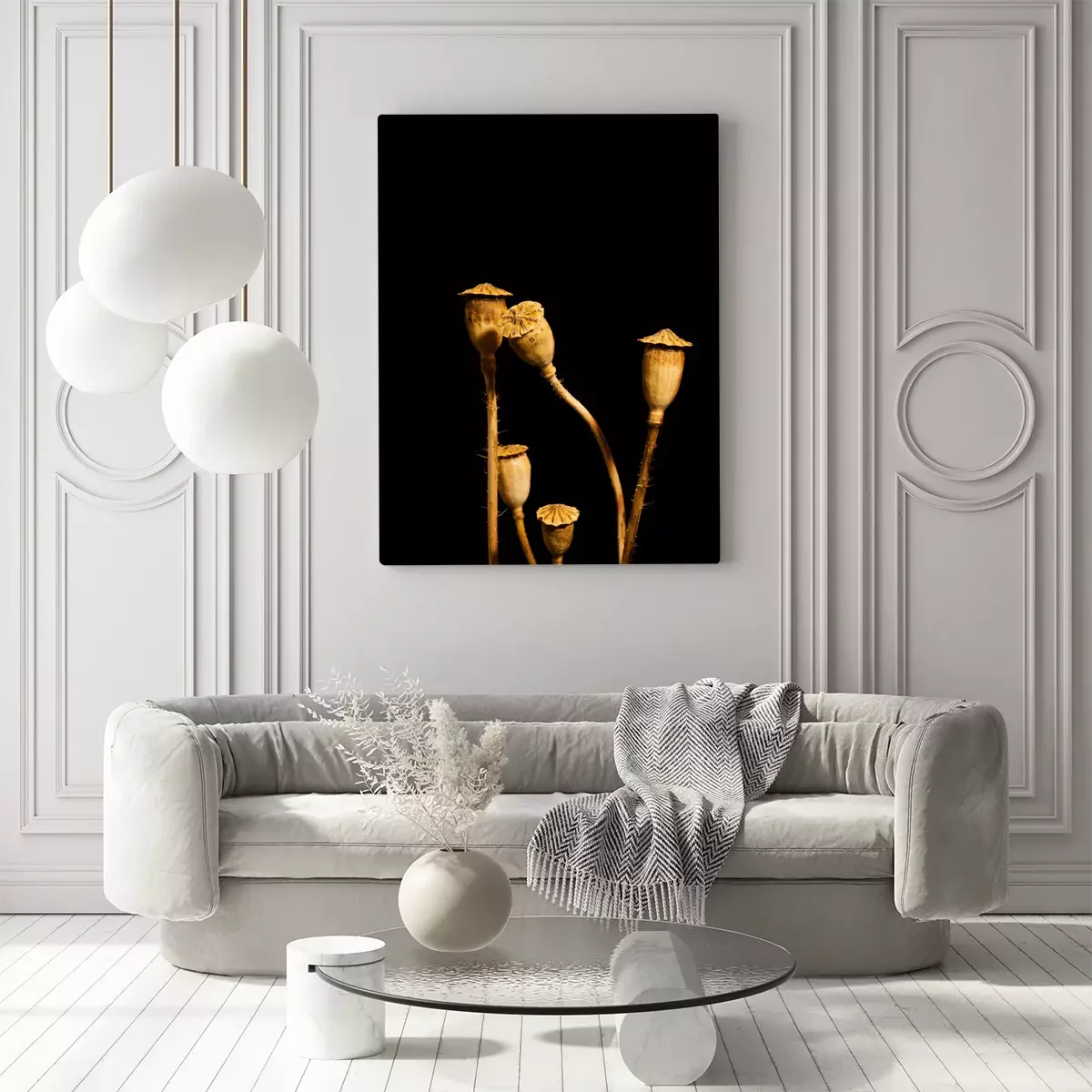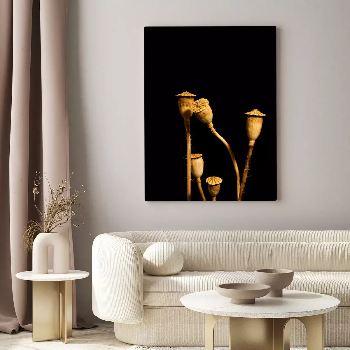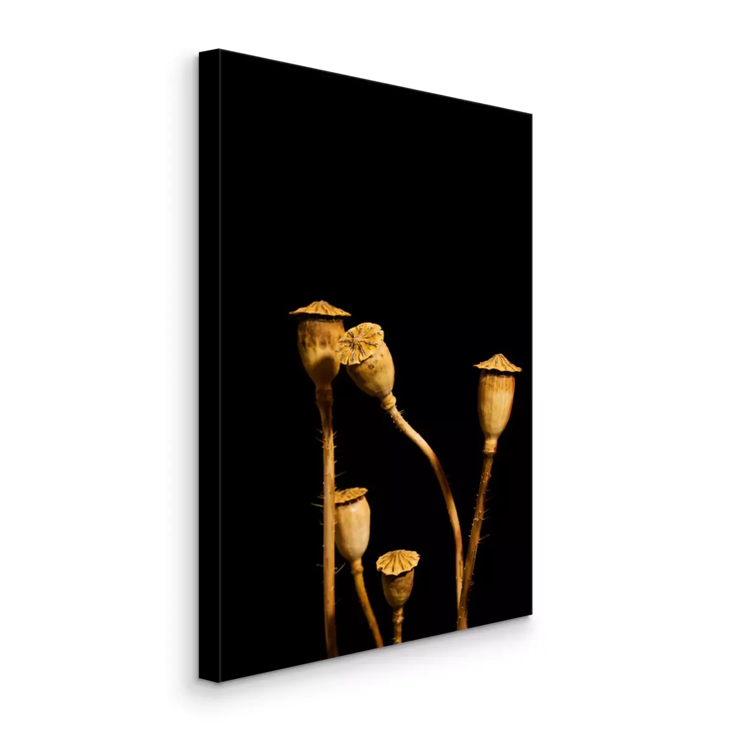 Canvas: stelletje droge papavers op zwarte achtergrond