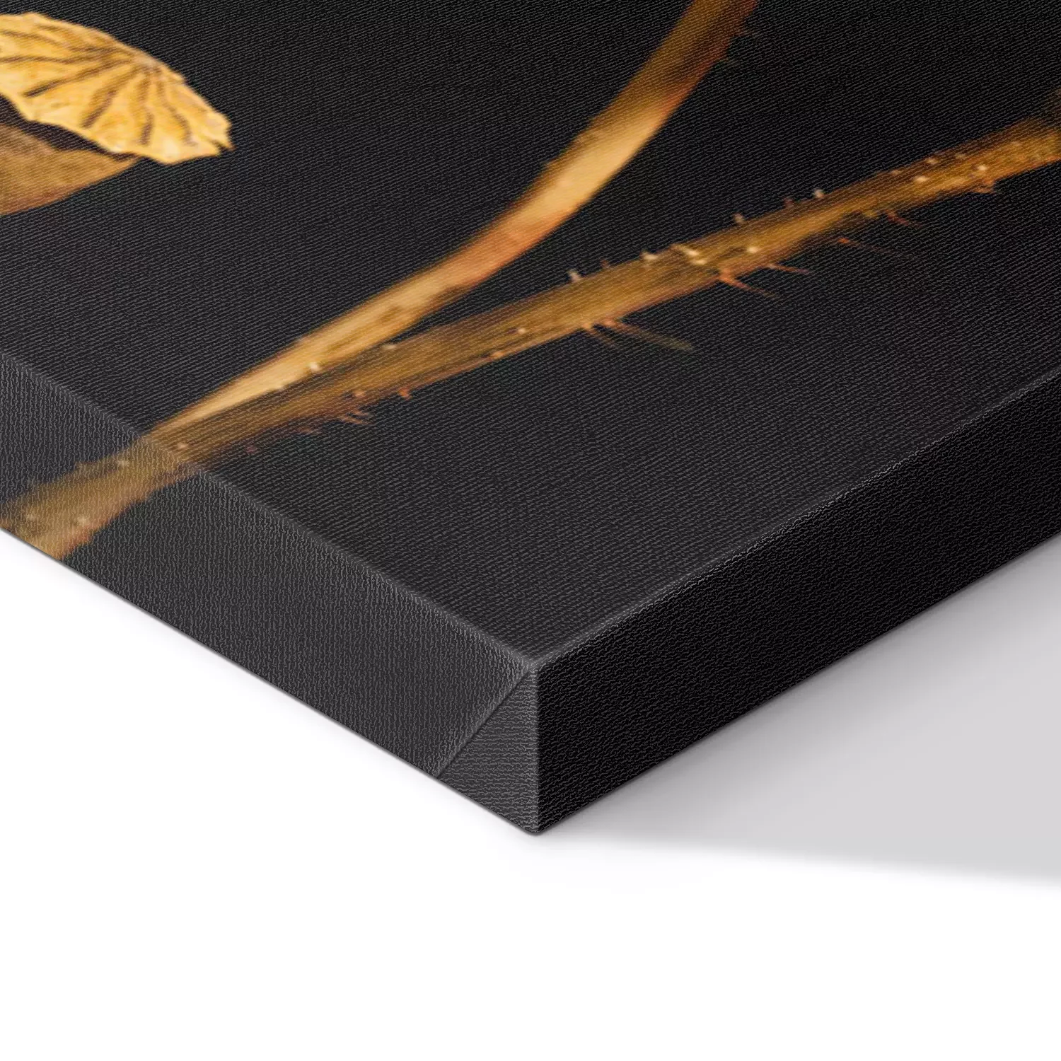 De print wordt aangebracht op hoogwaardig canvas dat op een schildersweefgetouw (spieraam) wordt gespannen. Omdat de print de zijranden bedekt, hoeft het ontwerp niet met een extra kader te worden omlijst. Wij raden ook composities aan die uit meerdere foto's bestaan en zo een coherente compositie vormen.