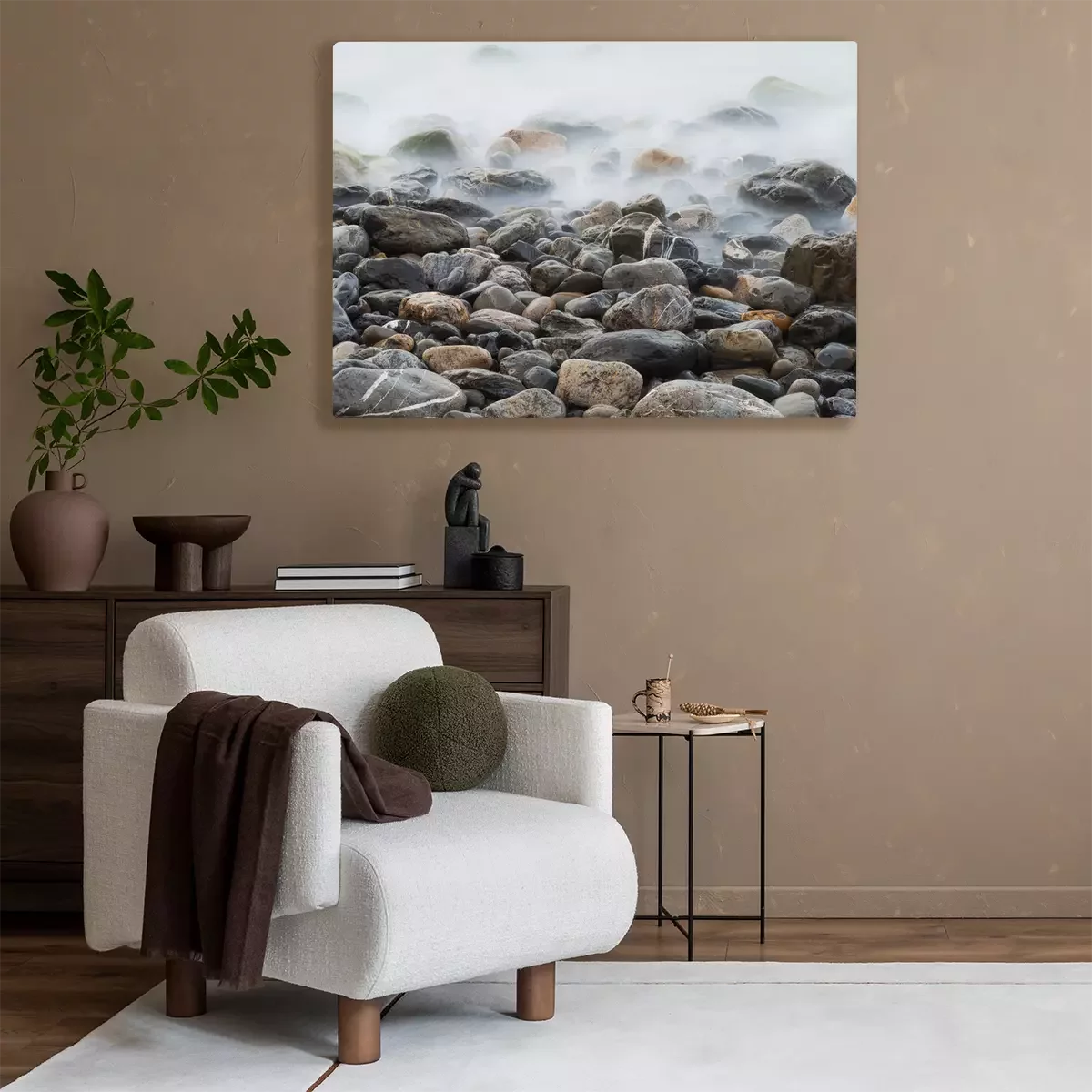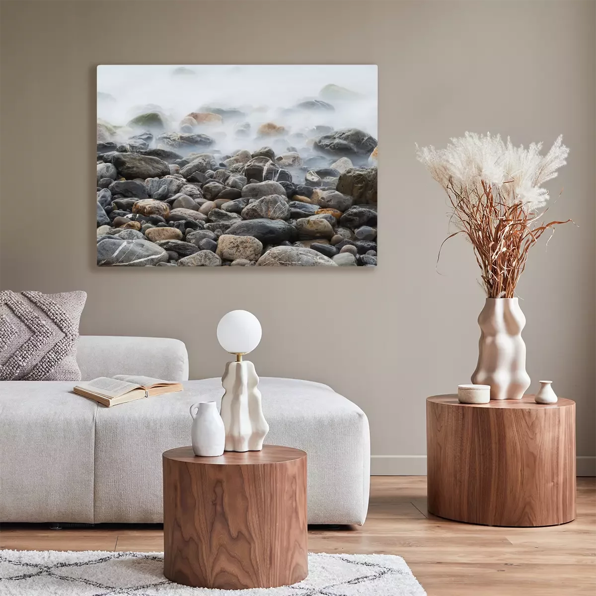 De print wordt aangebracht op hoogwaardig canvas dat op een schildersweefgetouw (spieraam) wordt gespannen. Omdat de print de zijranden bedekt, hoeft het ontwerp niet met een extra kader te worden omlijst. Wij raden ook composities aan die uit meerdere foto's bestaan en zo een coherente compositie vormen.
