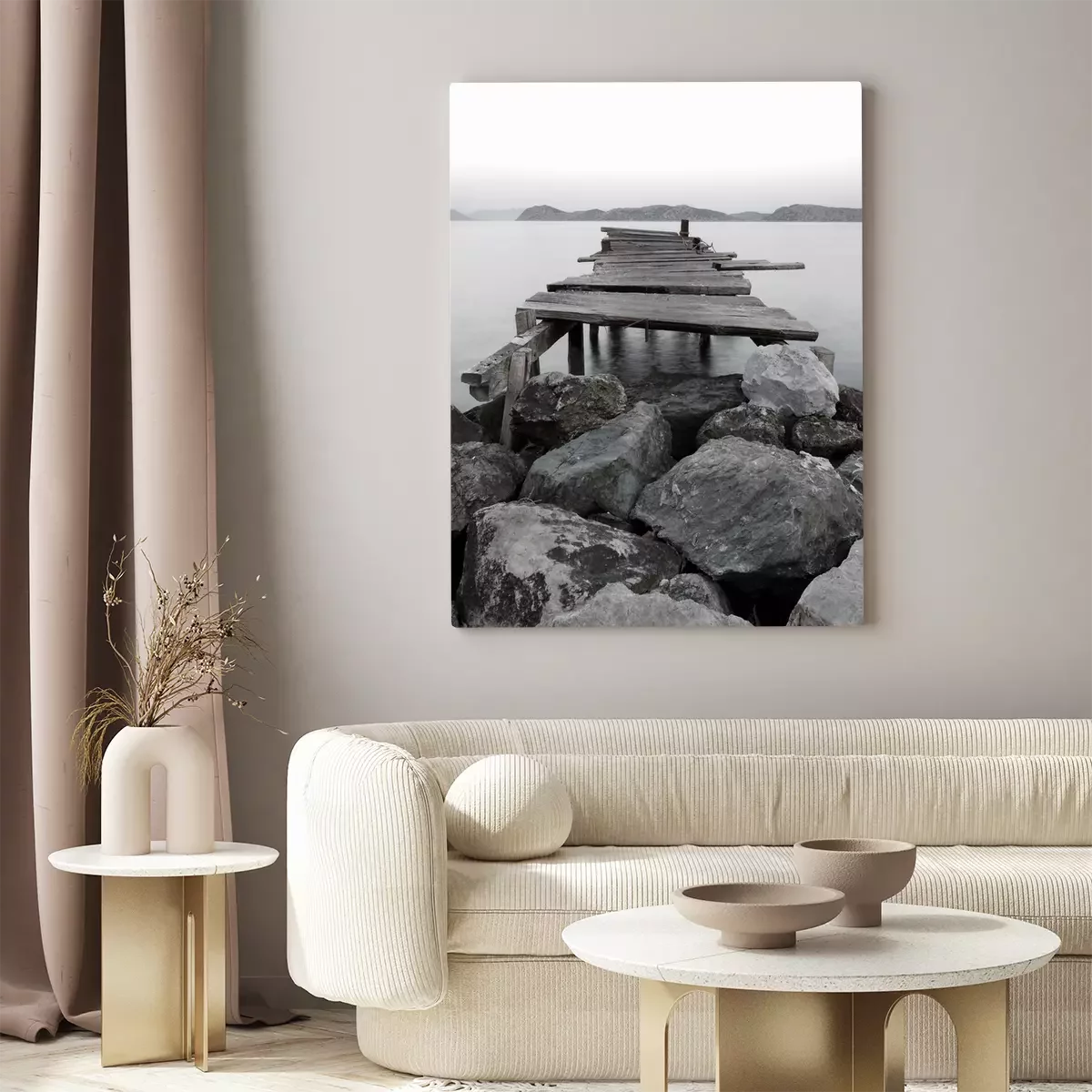 De print wordt aangebracht op hoogwaardig canvas dat op een schildersweefgetouw (spieraam) wordt gespannen. Omdat de print de zijranden bedekt, hoeft het ontwerp niet met een extra kader te worden omlijst. Wij raden ook composities aan die uit meerdere foto's bestaan en zo een coherente compositie vormen.