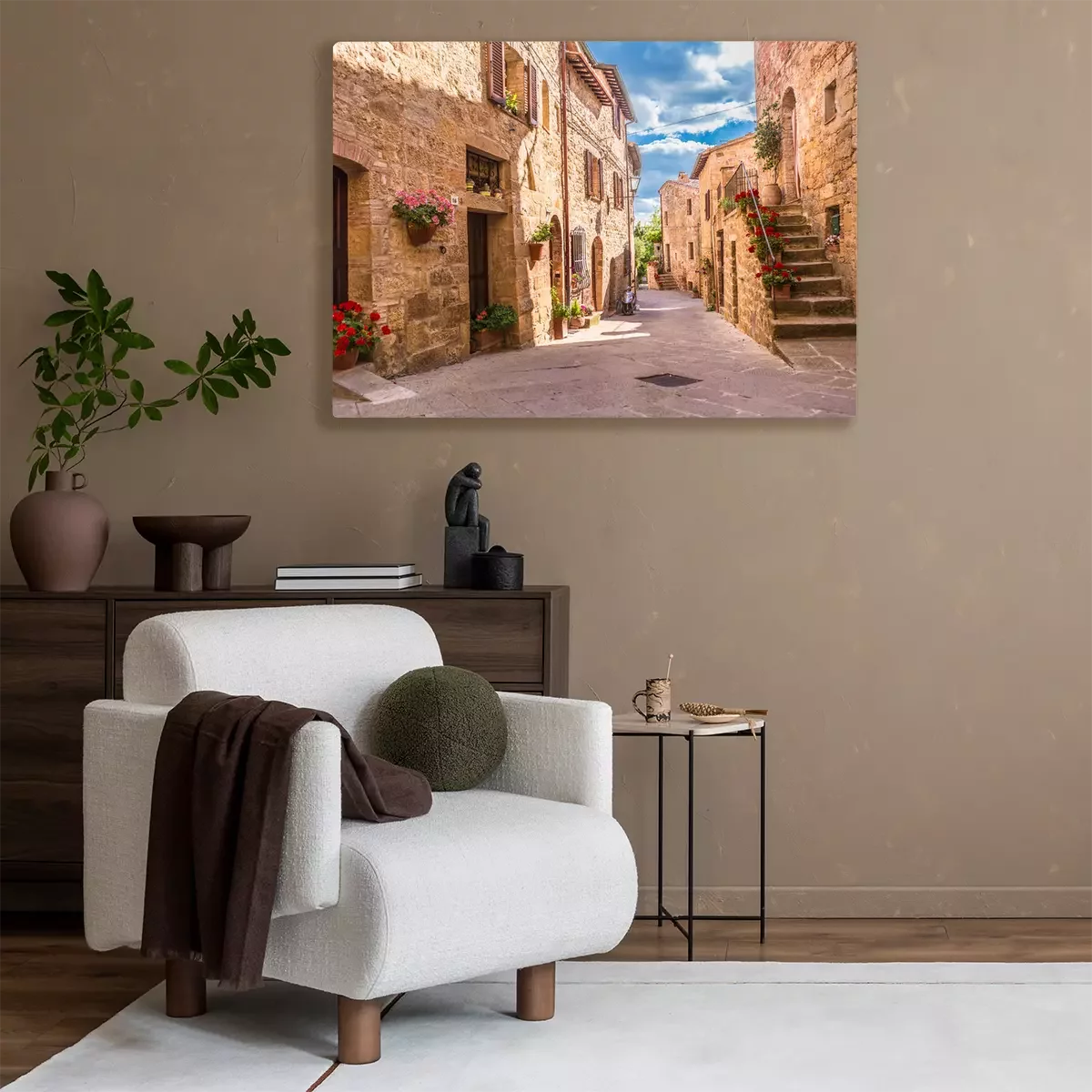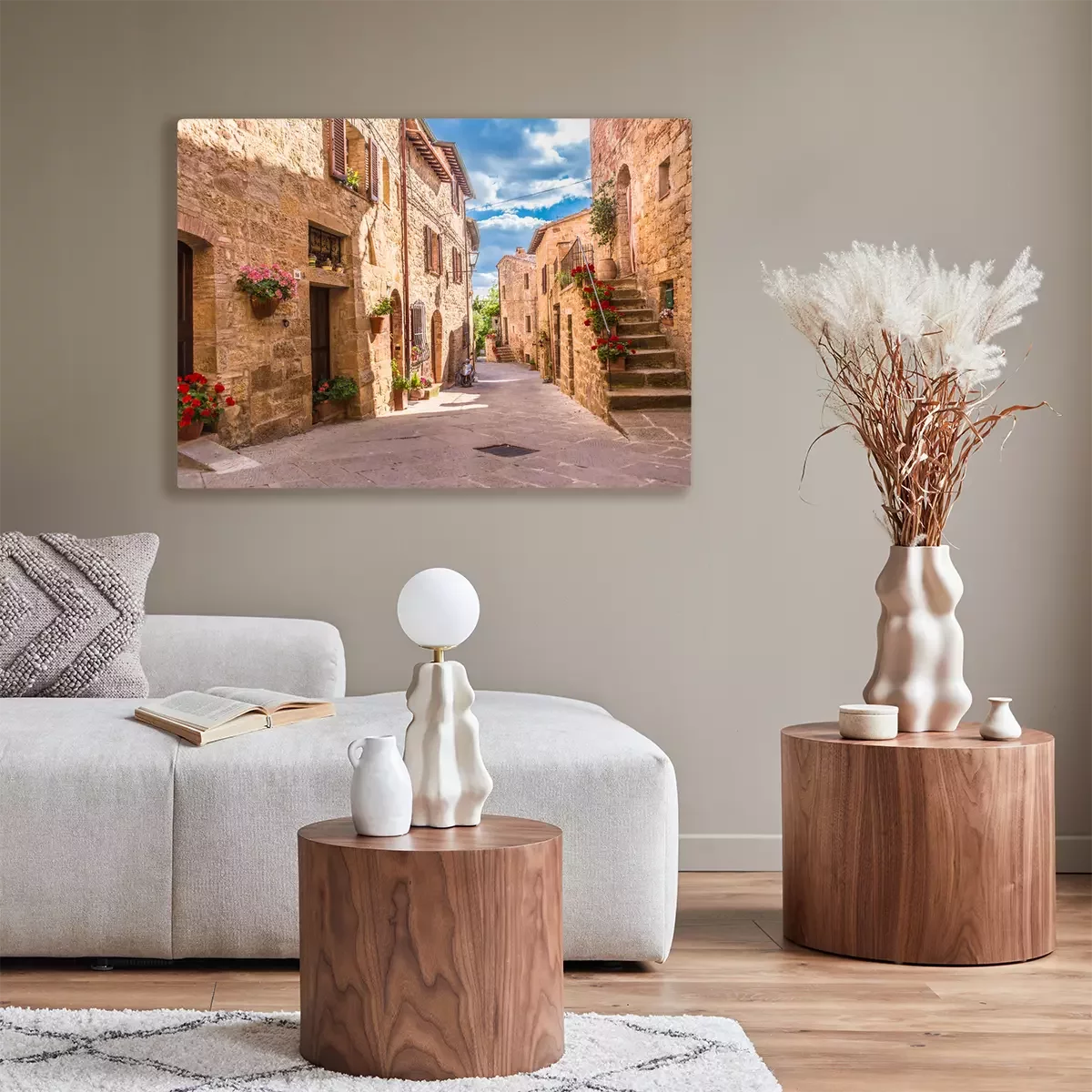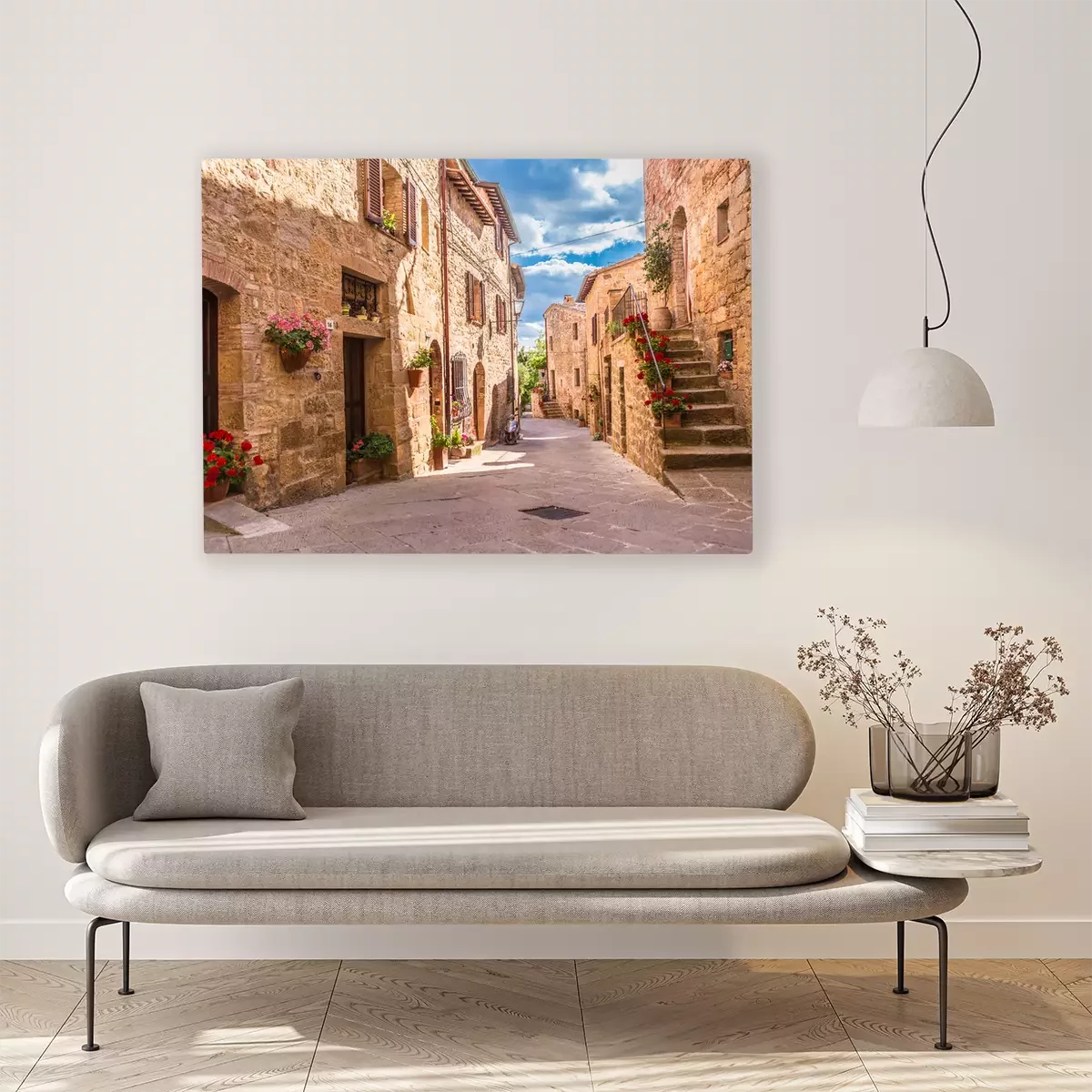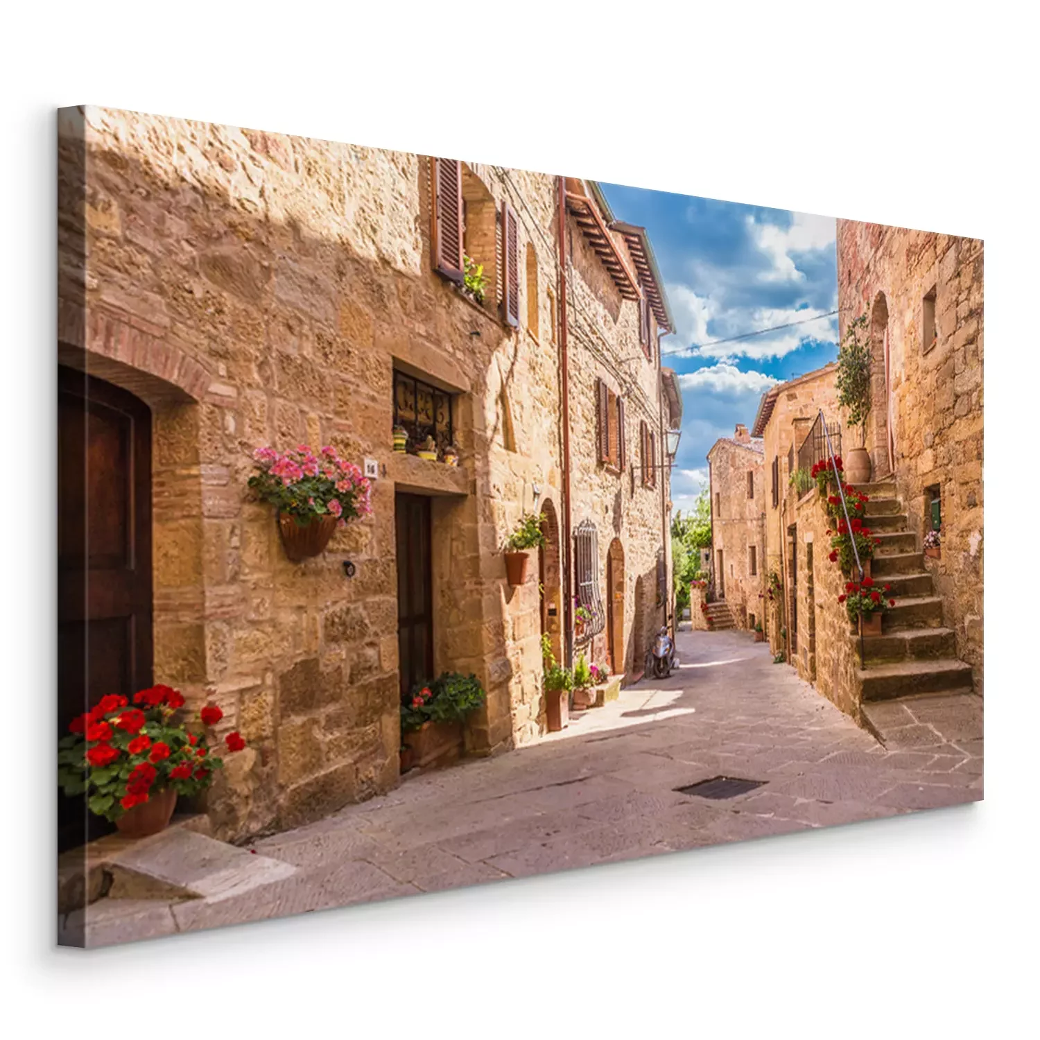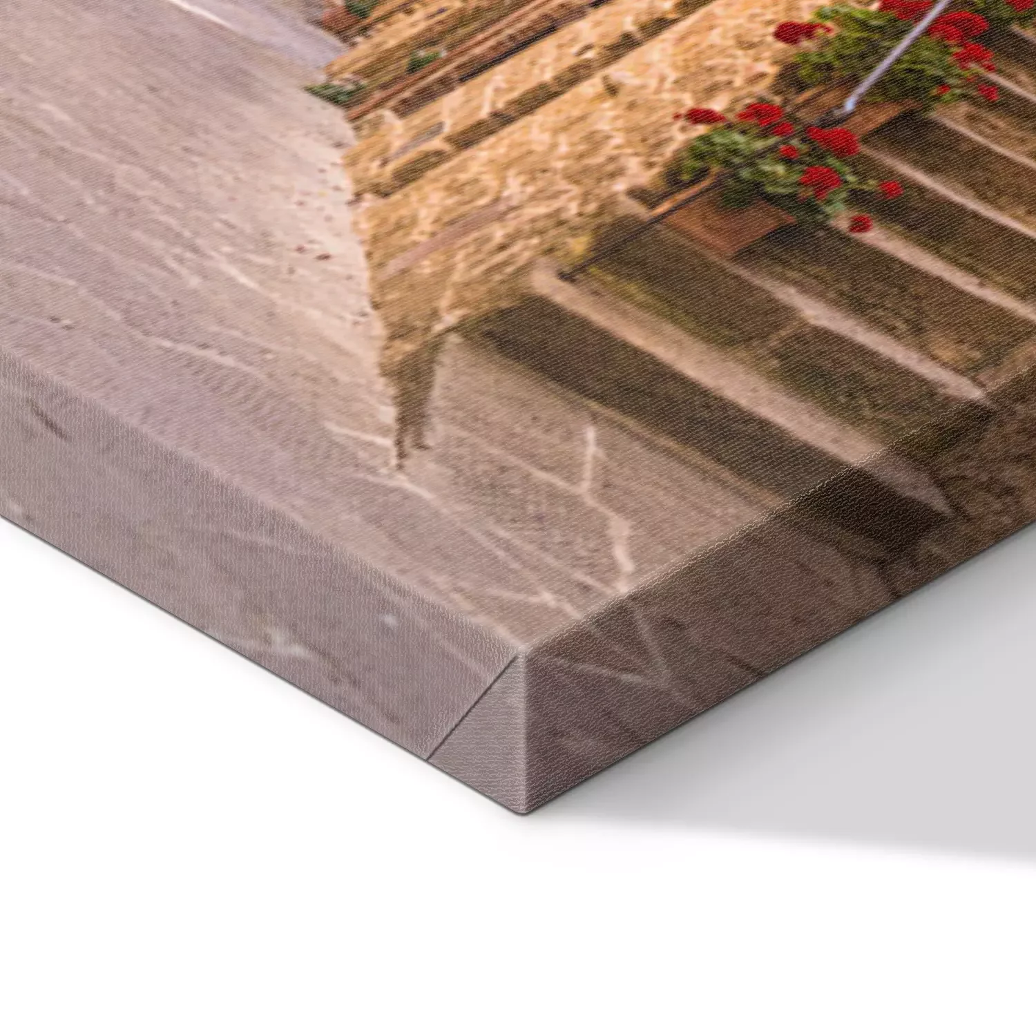 Canvas: Stenen huizen met bloemen