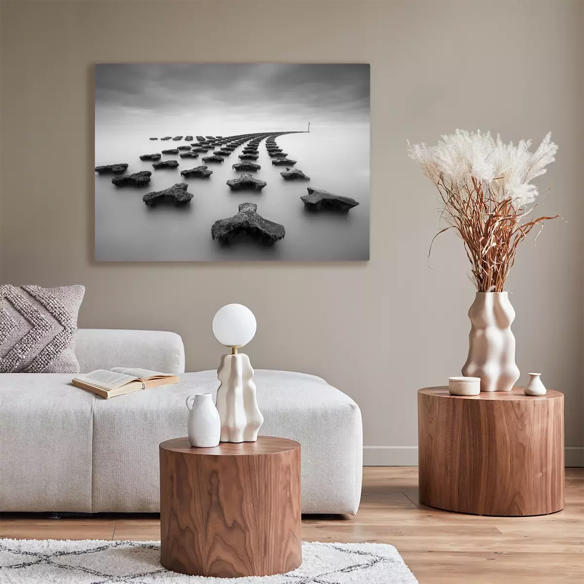 Canvas: stenen in een kalme zee