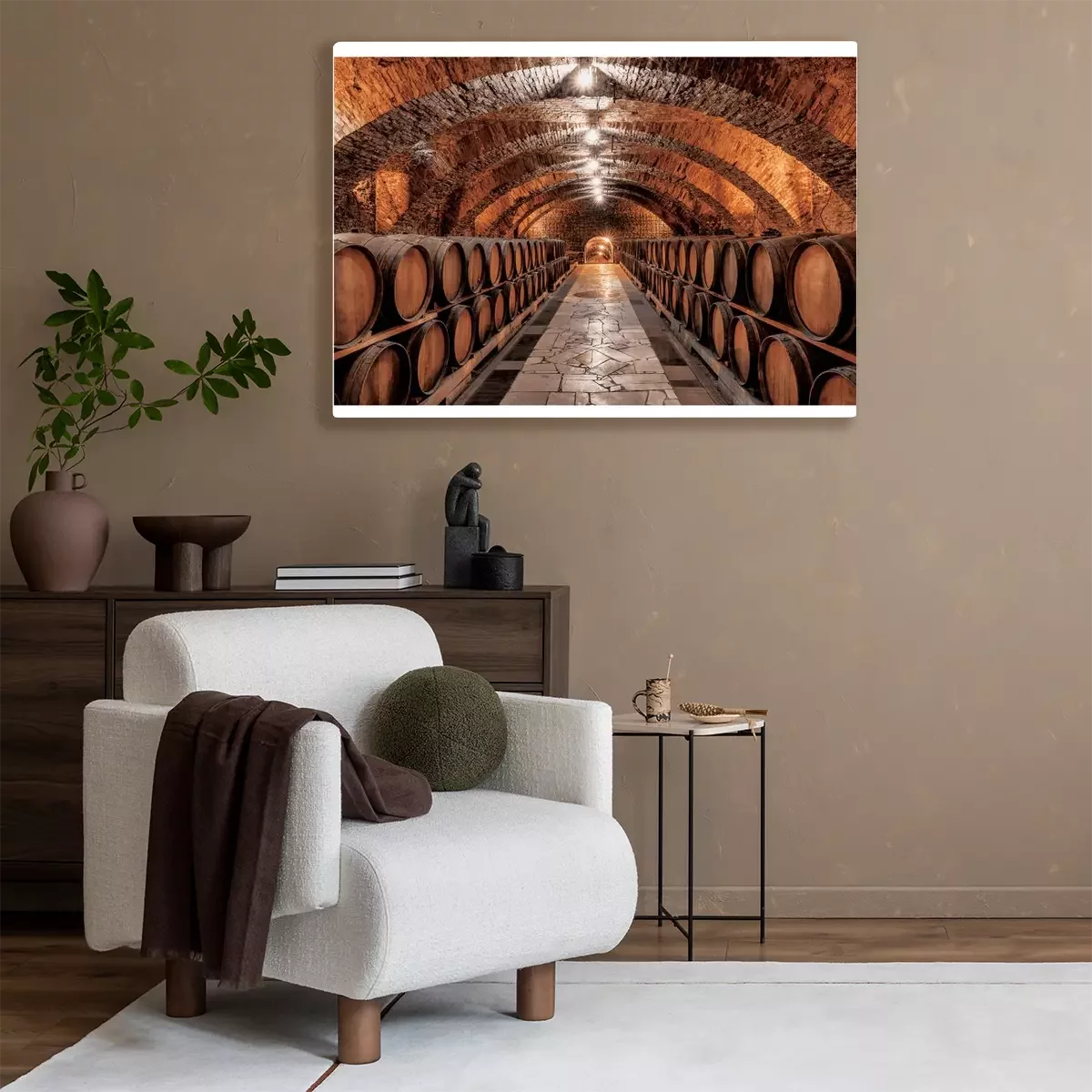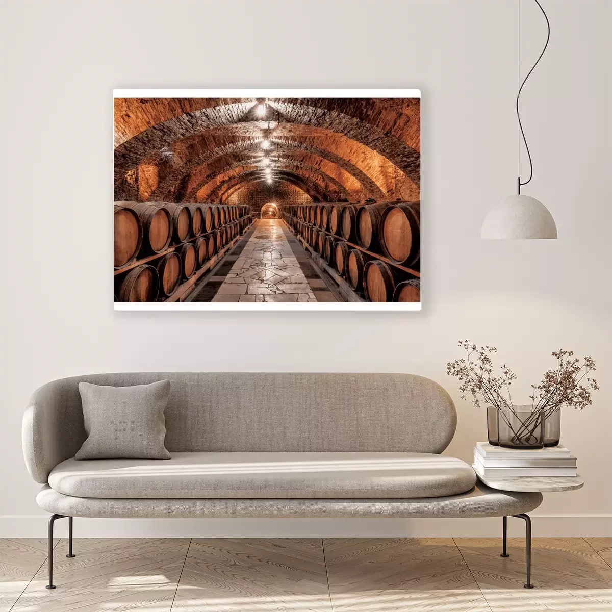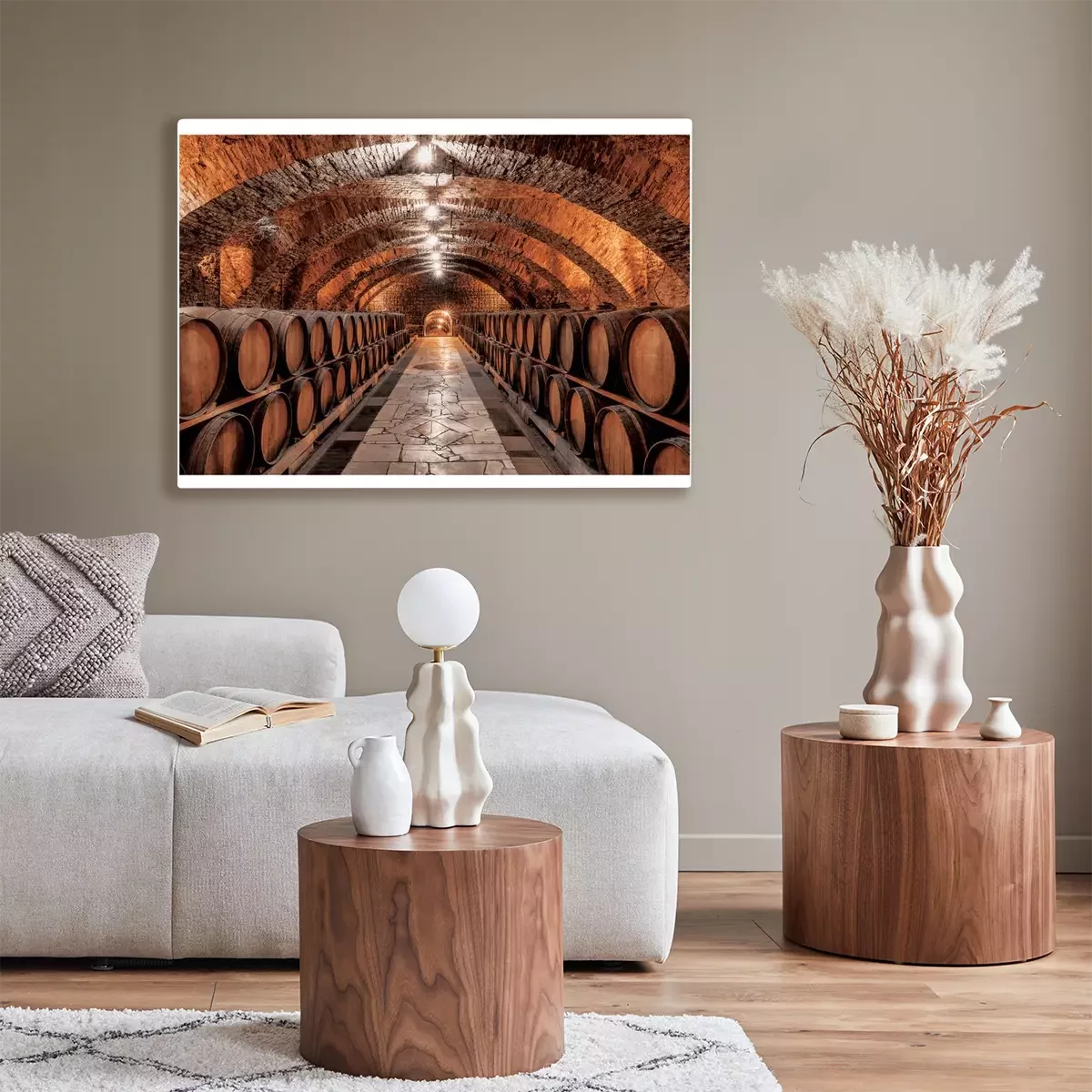 Stenen kelder met houten wijnvaten