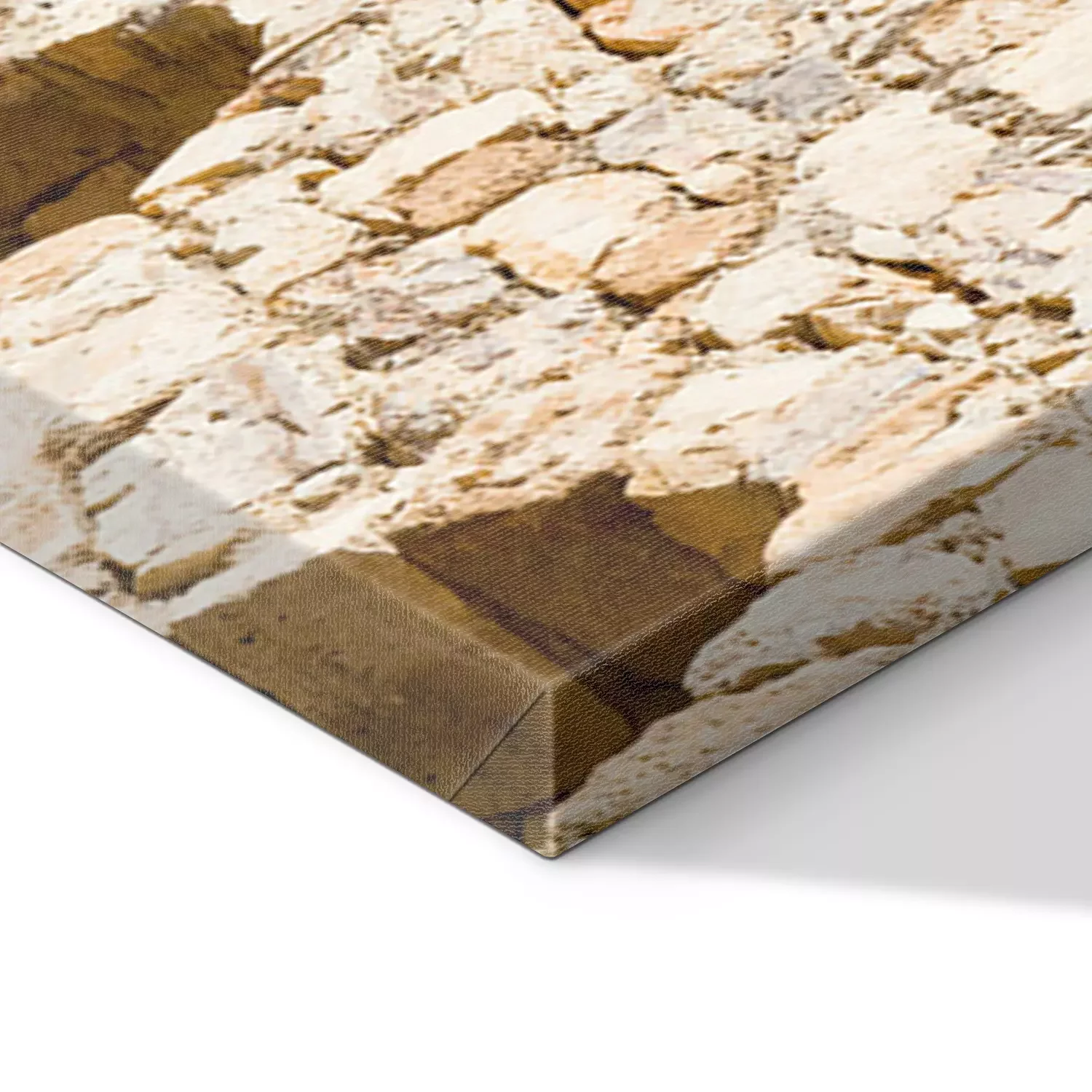 De print wordt aangebracht op hoogwaardig canvas dat op een schildersweefgetouw (spieraam) wordt gespannen. Omdat de print de zijranden bedekt, hoeft het ontwerp niet met een extra kader te worden omlijst. Wij raden ook composities aan die uit meerdere foto's bestaan en zo een coherente compositie vormen.