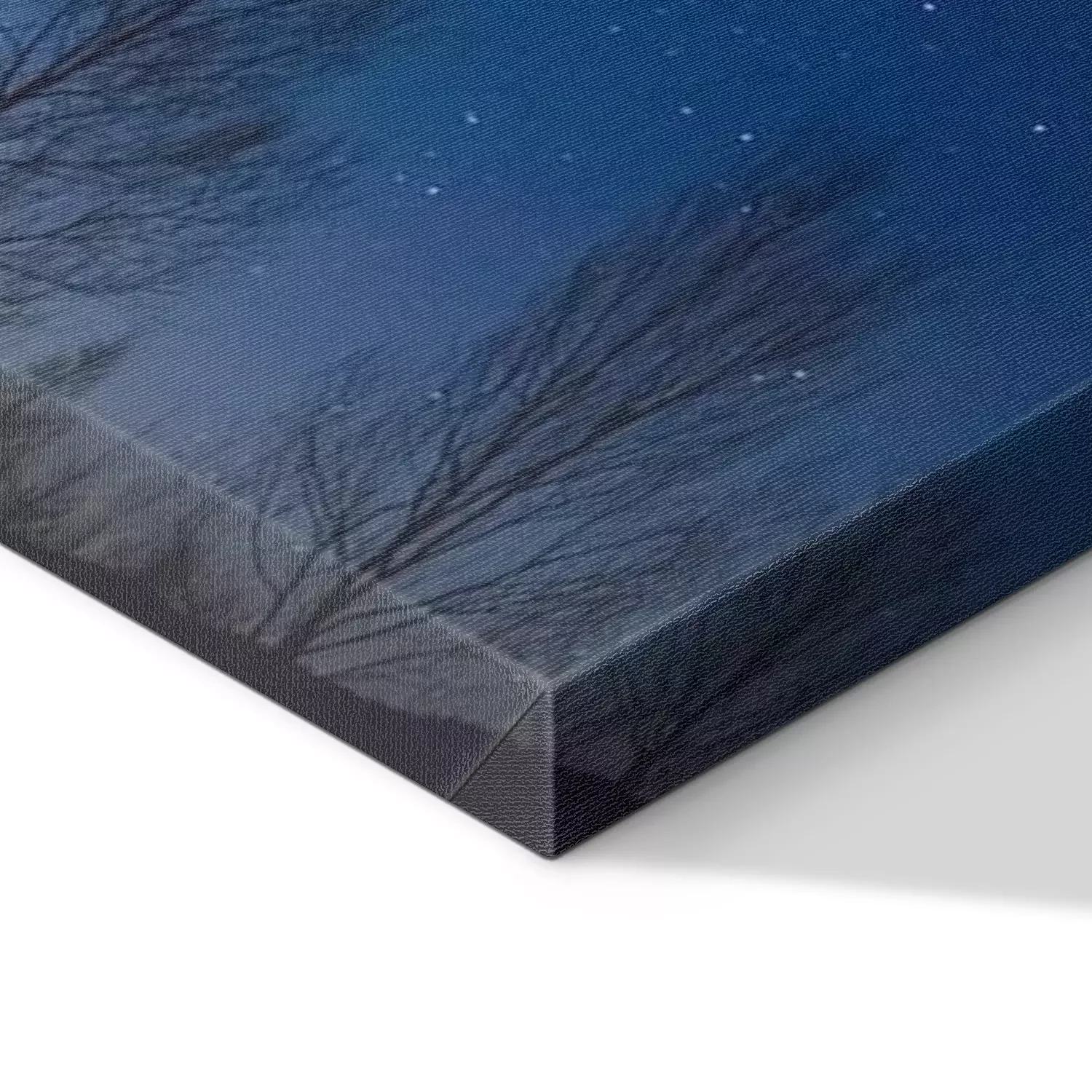 De print wordt aangebracht op hoogwaardig canvas dat op een schildersweefgetouw (spieraam) wordt gespannen. Omdat de print de zijranden bedekt, hoeft het ontwerp niet met een extra kader te worden omlijst. Wij raden ook composities aan die uit meerdere foto's bestaan en zo een coherente compositie vormen.
