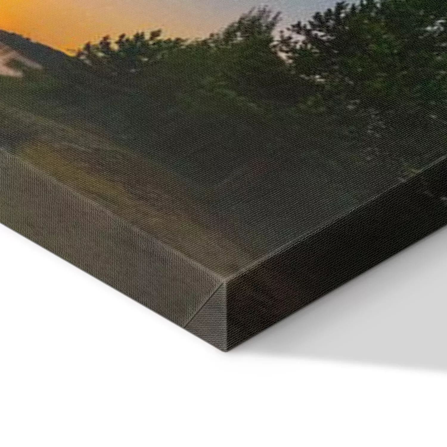 De print wordt aangebracht op hoogwaardig canvas dat op een schildersweefgetouw (spieraam) wordt gespannen. Omdat de print de zijranden bedekt, hoeft het ontwerp niet met een extra kader te worden omlijst. Wij raden ook composities aan die uit meerdere foto's bestaan en zo een coherente compositie vormen.