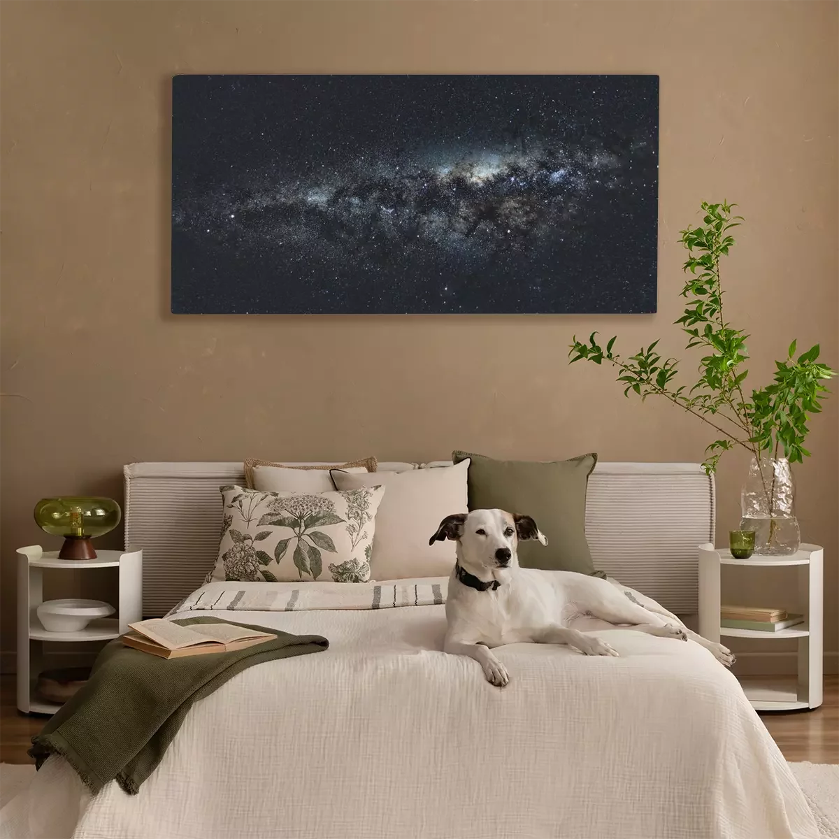 De print wordt aangebracht op hoogwaardig canvas dat op een schildersweefgetouw (spieraam) wordt gespannen. Omdat de print de zijranden bedekt, hoeft het ontwerp niet met een extra kader te worden omlijst. Wij raden ook composities aan die uit meerdere foto's bestaan en zo een coherente compositie vormen.