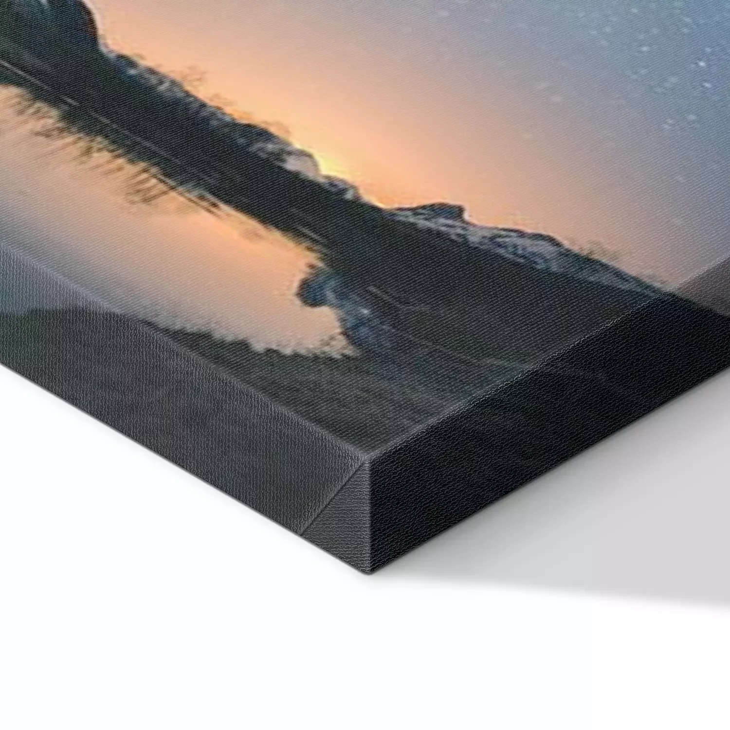 De print wordt aangebracht op hoogwaardig canvas dat op een schildersweefgetouw (spieraam) wordt gespannen. Omdat de print de zijranden bedekt, hoeft het ontwerp niet met een extra kader te worden omlijst. Wij raden ook composities aan die uit meerdere foto's bestaan en zo een coherente compositie vormen.
