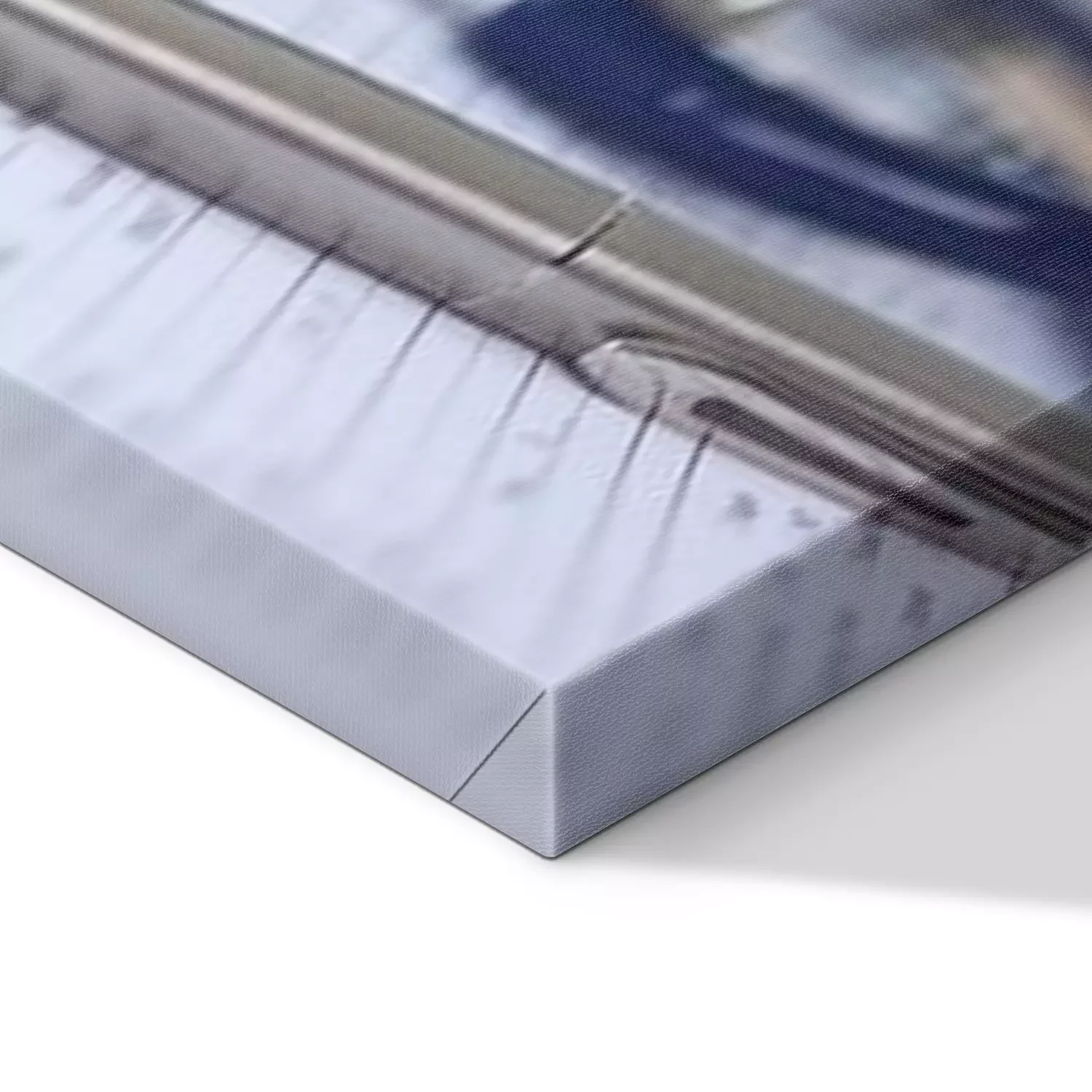 De print wordt aangebracht op hoogwaardig canvas dat op een schildersweefgetouw (spieraam) wordt gespannen. Omdat de print de zijranden bedekt, hoeft het ontwerp niet met een extra kader te worden omlijst. Wij raden ook composities aan die uit meerdere foto's bestaan en zo een coherente compositie vormen.