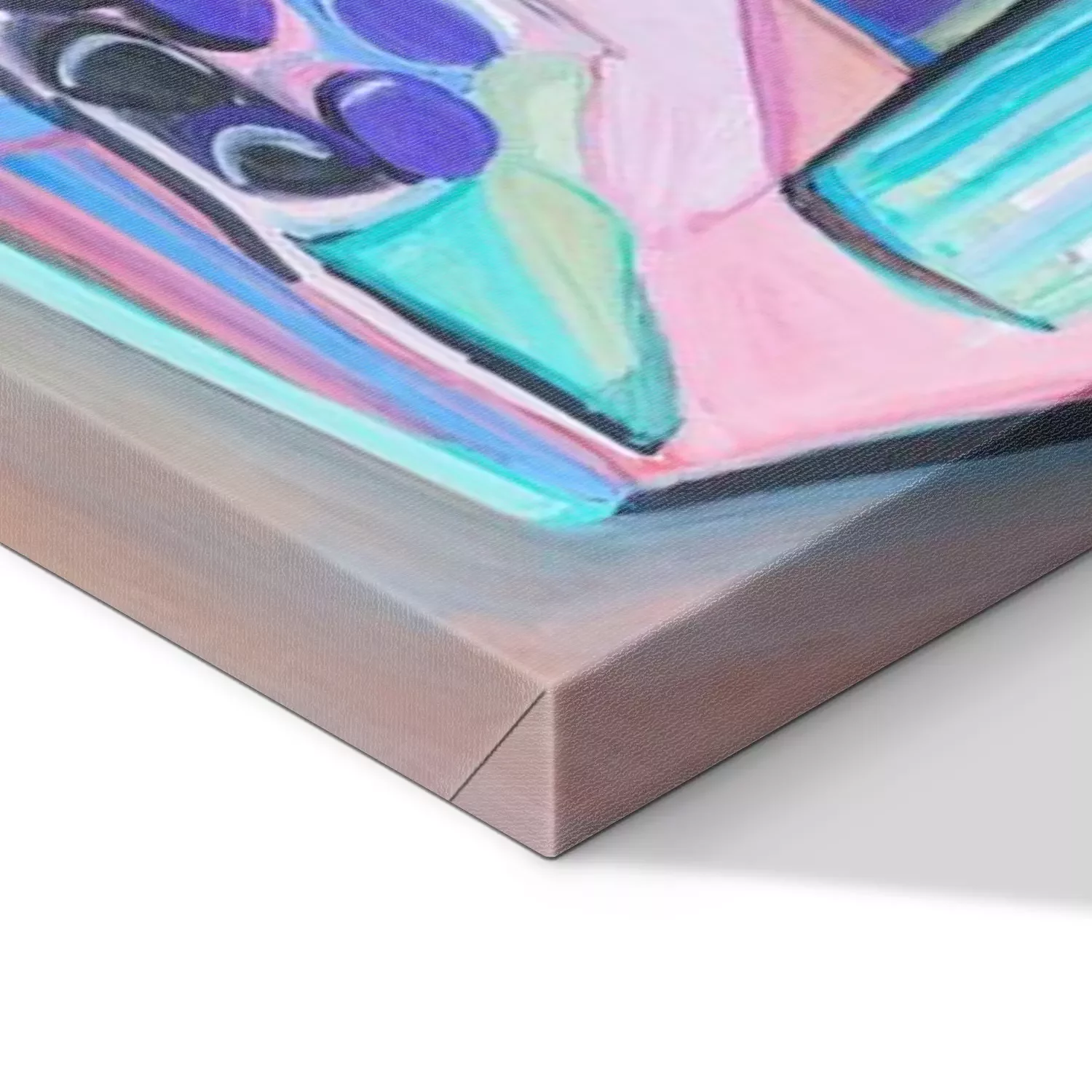 De print wordt aangebracht op hoogwaardig canvas dat op een schildersweefgetouw (spieraam) wordt gespannen. Omdat de print de zijranden bedekt, hoeft het ontwerp niet met een extra kader te worden omlijst. Wij raden ook composities aan die uit meerdere foto's bestaan en zo een coherente compositie vormen.