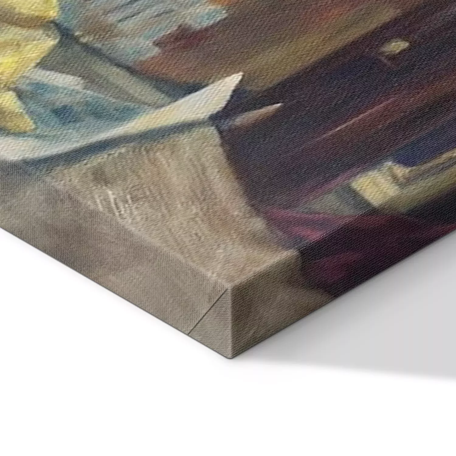 De print wordt aangebracht op hoogwaardig canvas dat op een schildersweefgetouw (spieraam) wordt gespannen. Omdat de print de zijranden bedekt, hoeft het ontwerp niet met een extra kader te worden omlijst. Wij raden ook composities aan die uit meerdere foto's bestaan en zo een coherente compositie vormen.