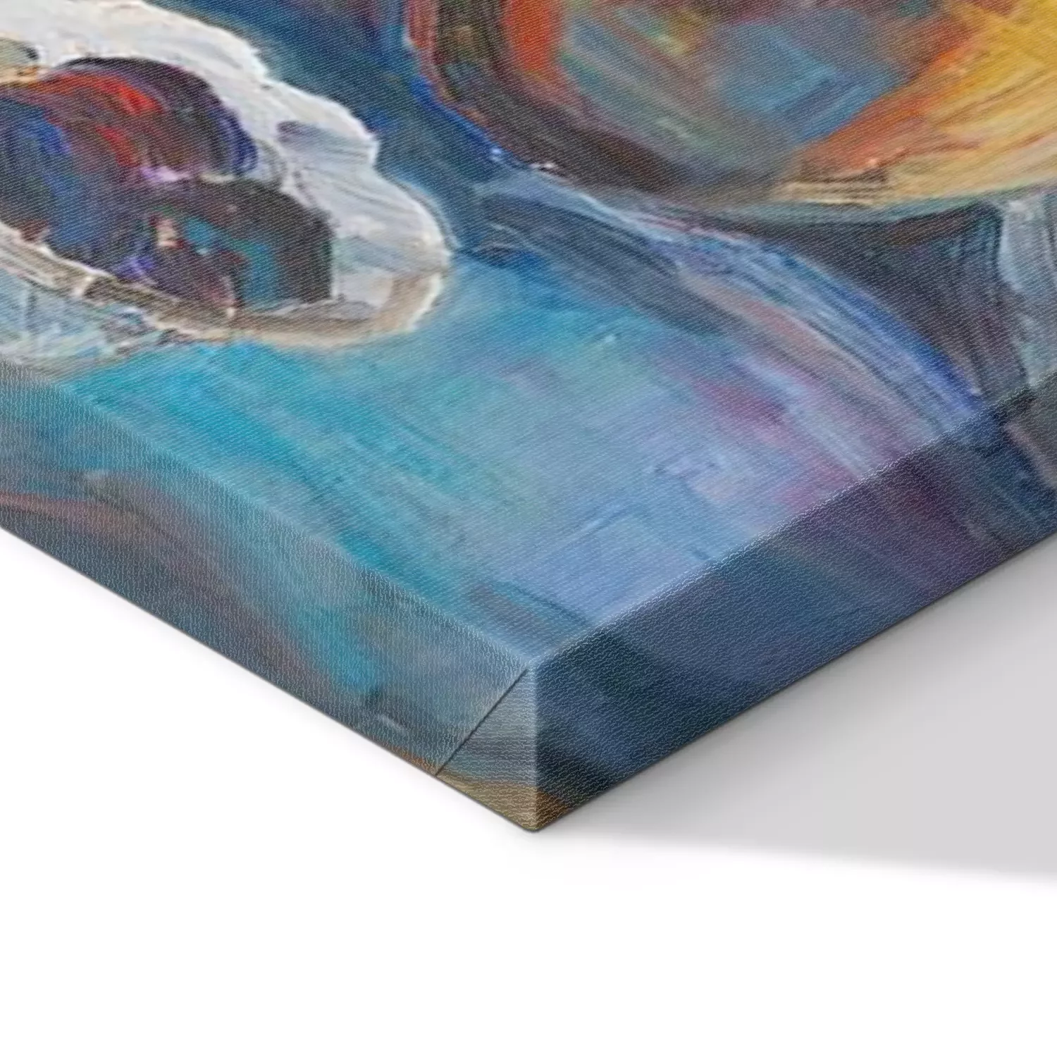 De print wordt aangebracht op hoogwaardig canvas dat op een schildersweefgetouw (spieraam) wordt gespannen. Omdat de print de zijranden bedekt, hoeft het ontwerp niet met een extra kader te worden omlijst. Wij raden ook composities aan die uit meerdere foto's bestaan en zo een coherente compositie vormen.