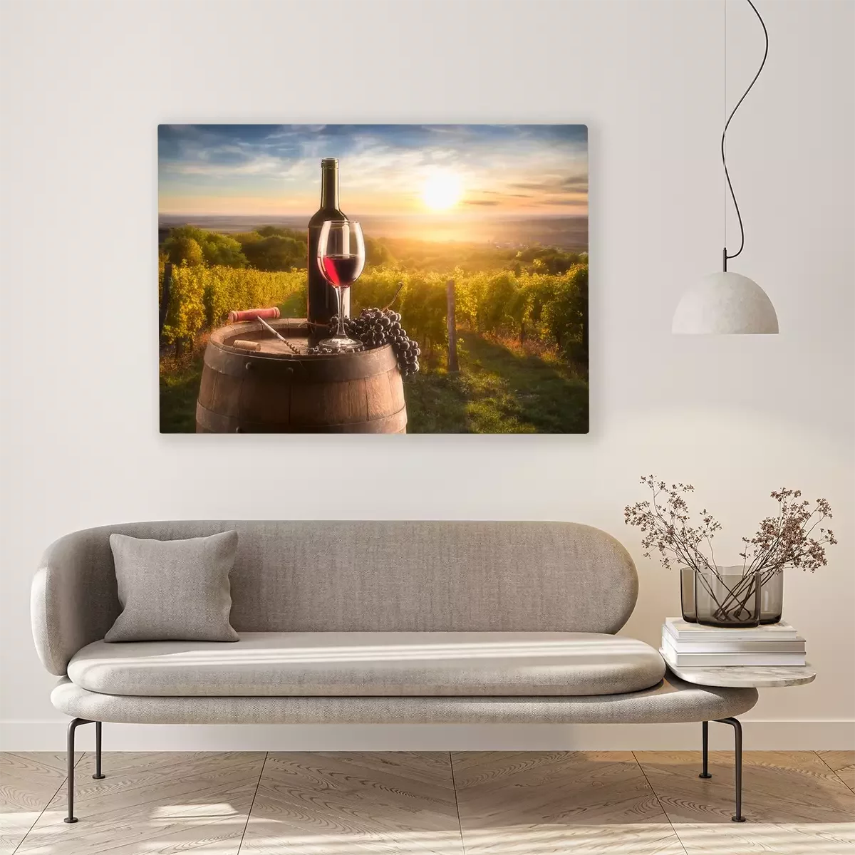 Canvas: Stilleven met wijngaard in de achtergrond