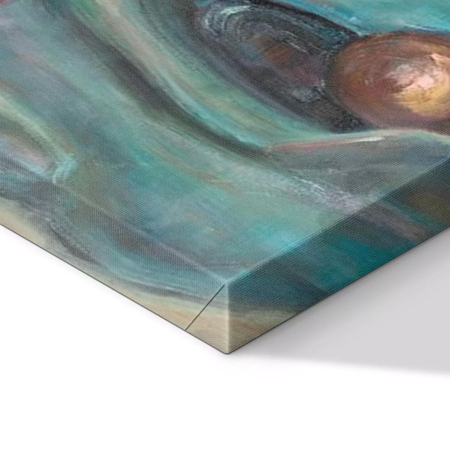 De print wordt aangebracht op hoogwaardig canvas dat op een schildersweefgetouw (spieraam) wordt gespannen. Omdat de print de zijranden bedekt, hoeft het ontwerp niet met een extra kader te worden omlijst. Wij raden ook composities aan die uit meerdere foto's bestaan en zo een coherente compositie vormen.