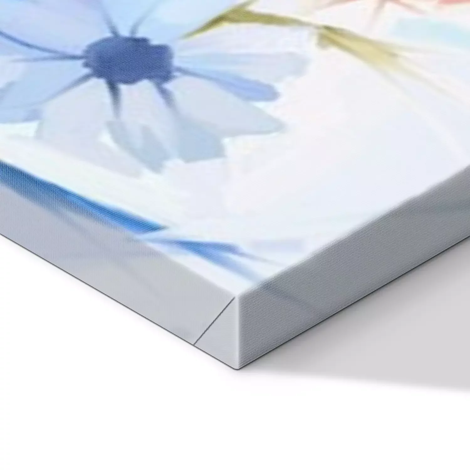 De print wordt aangebracht op hoogwaardig canvas dat op een schildersweefgetouw (spieraam) wordt gespannen. Omdat de print de zijranden bedekt, hoeft het ontwerp niet met een extra kader te worden omlijst. Wij raden ook composities aan die uit meerdere foto's bestaan en zo een coherente compositie vormen.