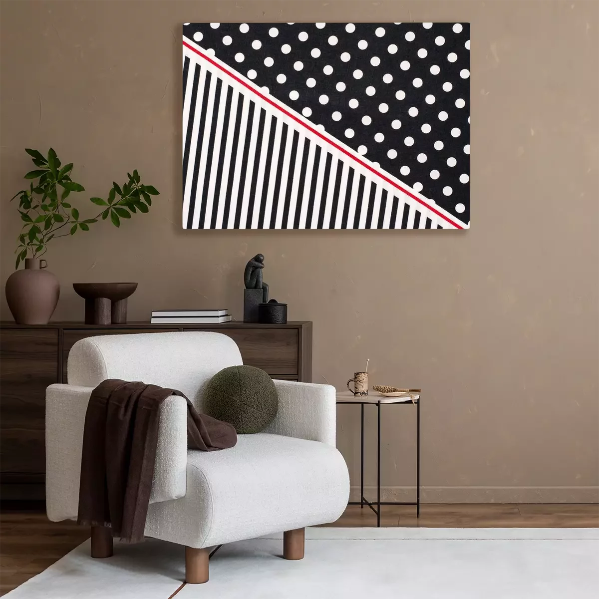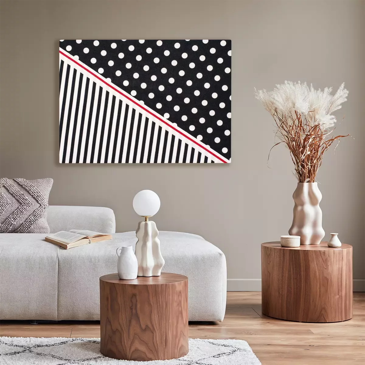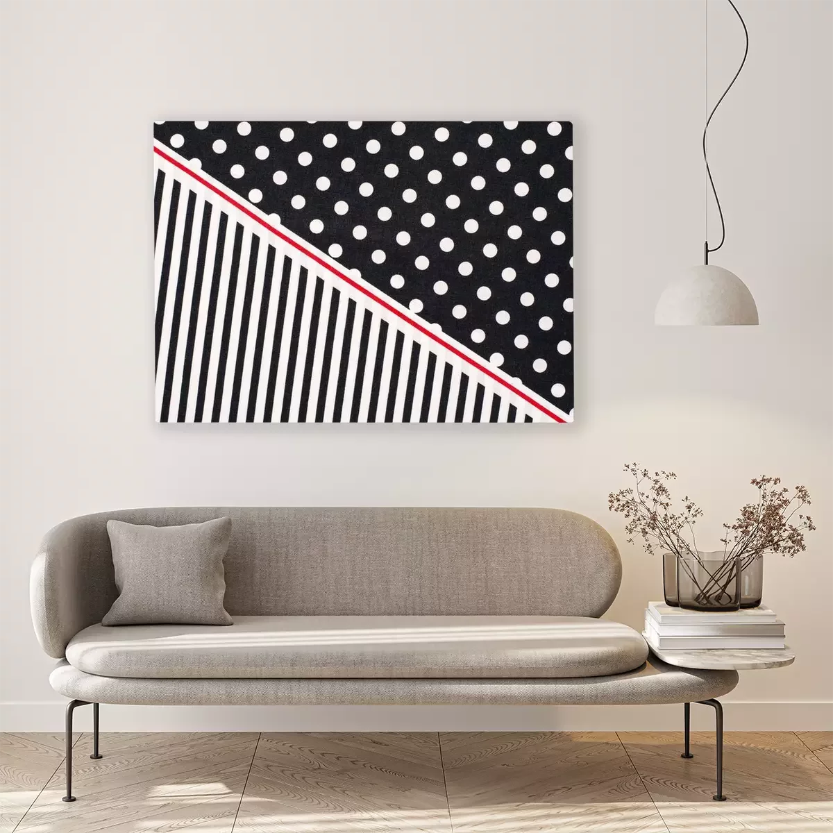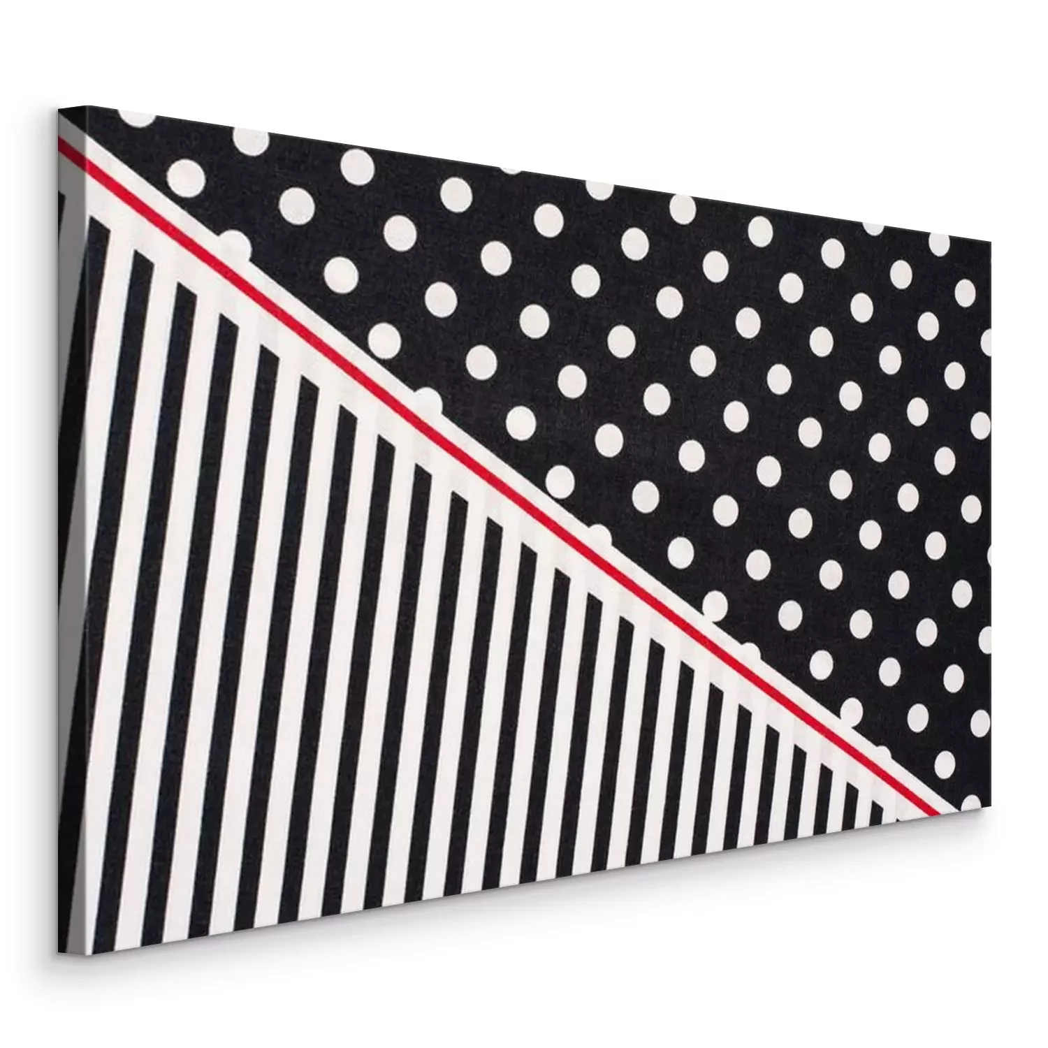 Canvas: Stippen en strepen patroon. Half witte stippen en een half verticale strepen af ​​te drukken op donker blauw als achtergrond.