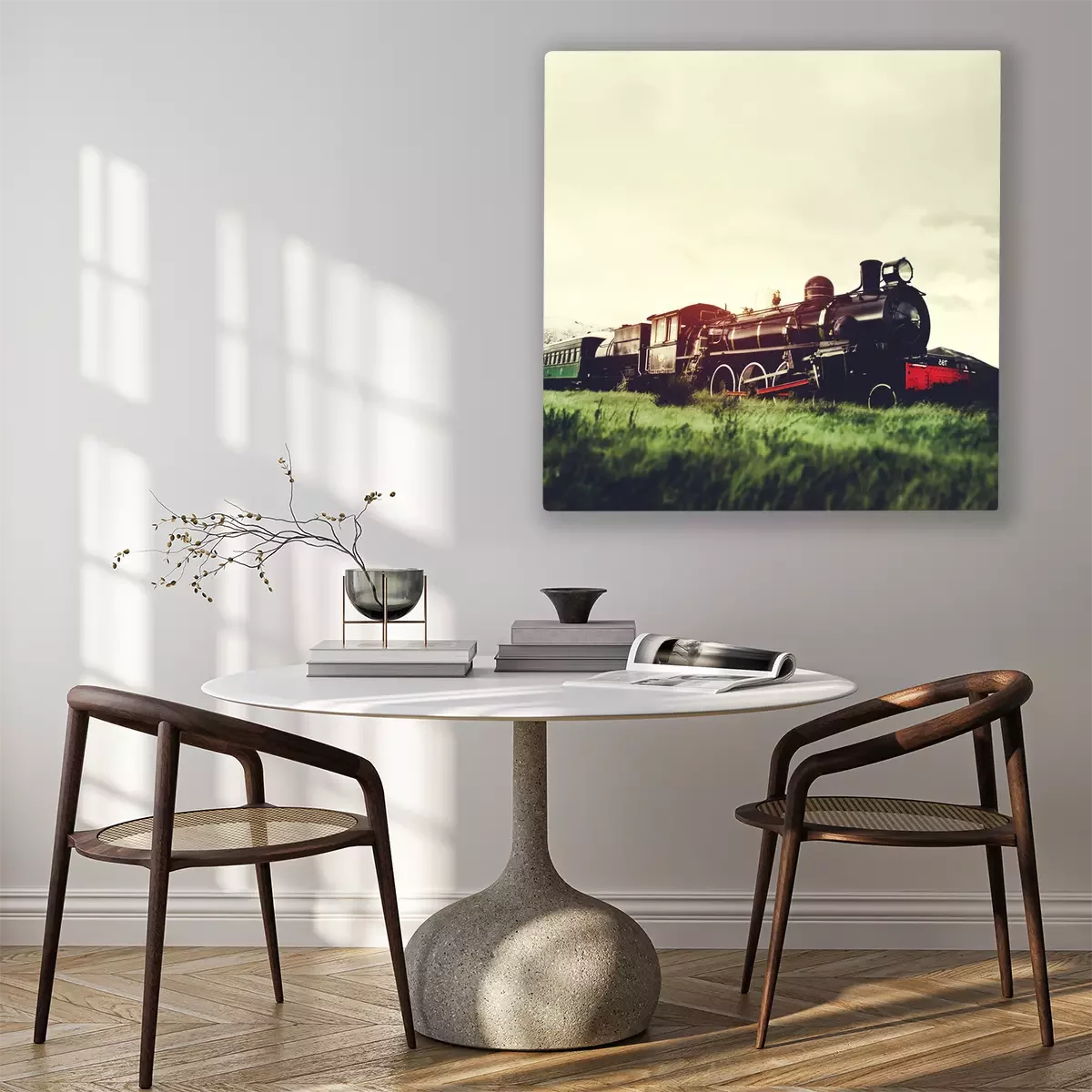 Canvas: Stoom trein in een open landschap Natural Scene Concept