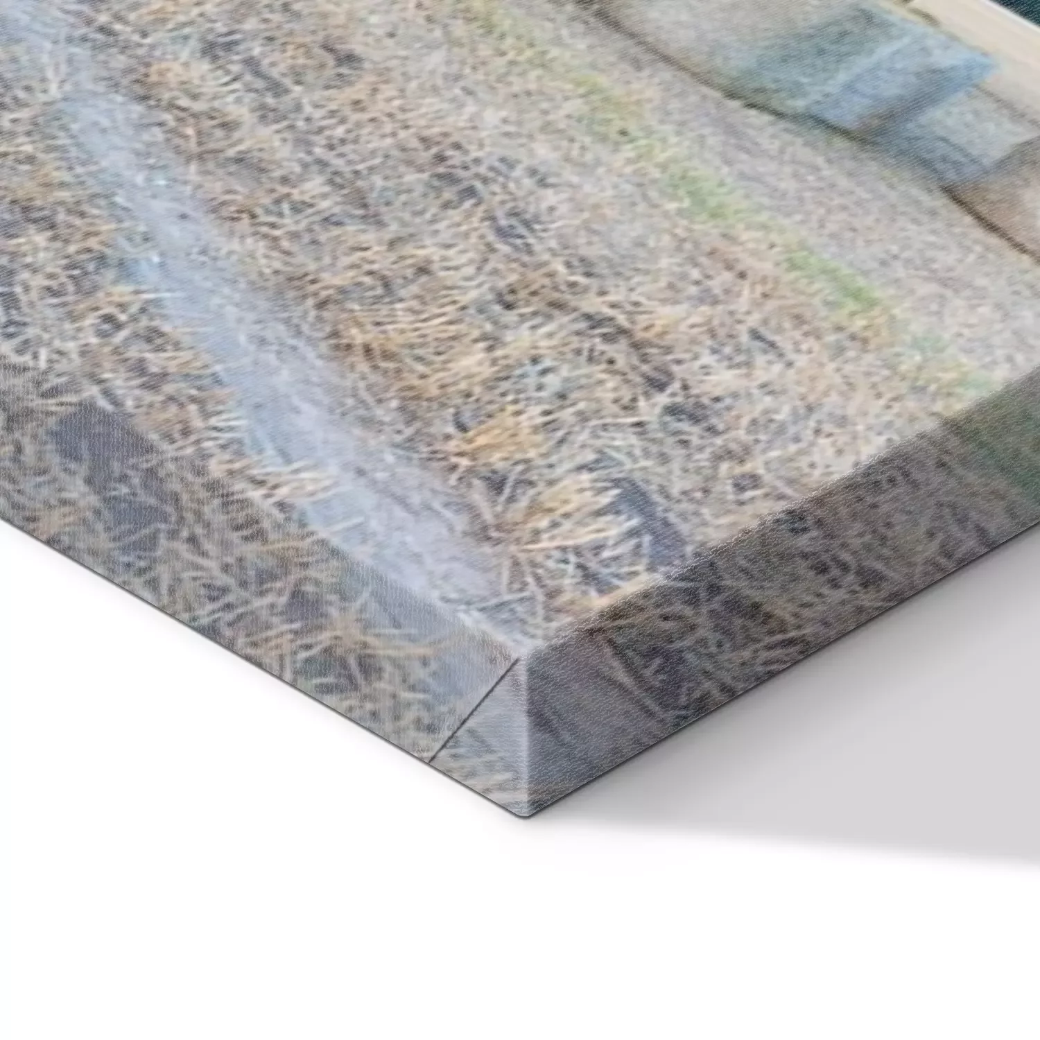 De print wordt aangebracht op hoogwaardig canvas dat op een schildersweefgetouw (spieraam) wordt gespannen. Omdat de print de zijranden bedekt, hoeft het ontwerp niet met een extra kader te worden omlijst. Wij raden ook composities aan die uit meerdere foto's bestaan en zo een coherente compositie vormen.