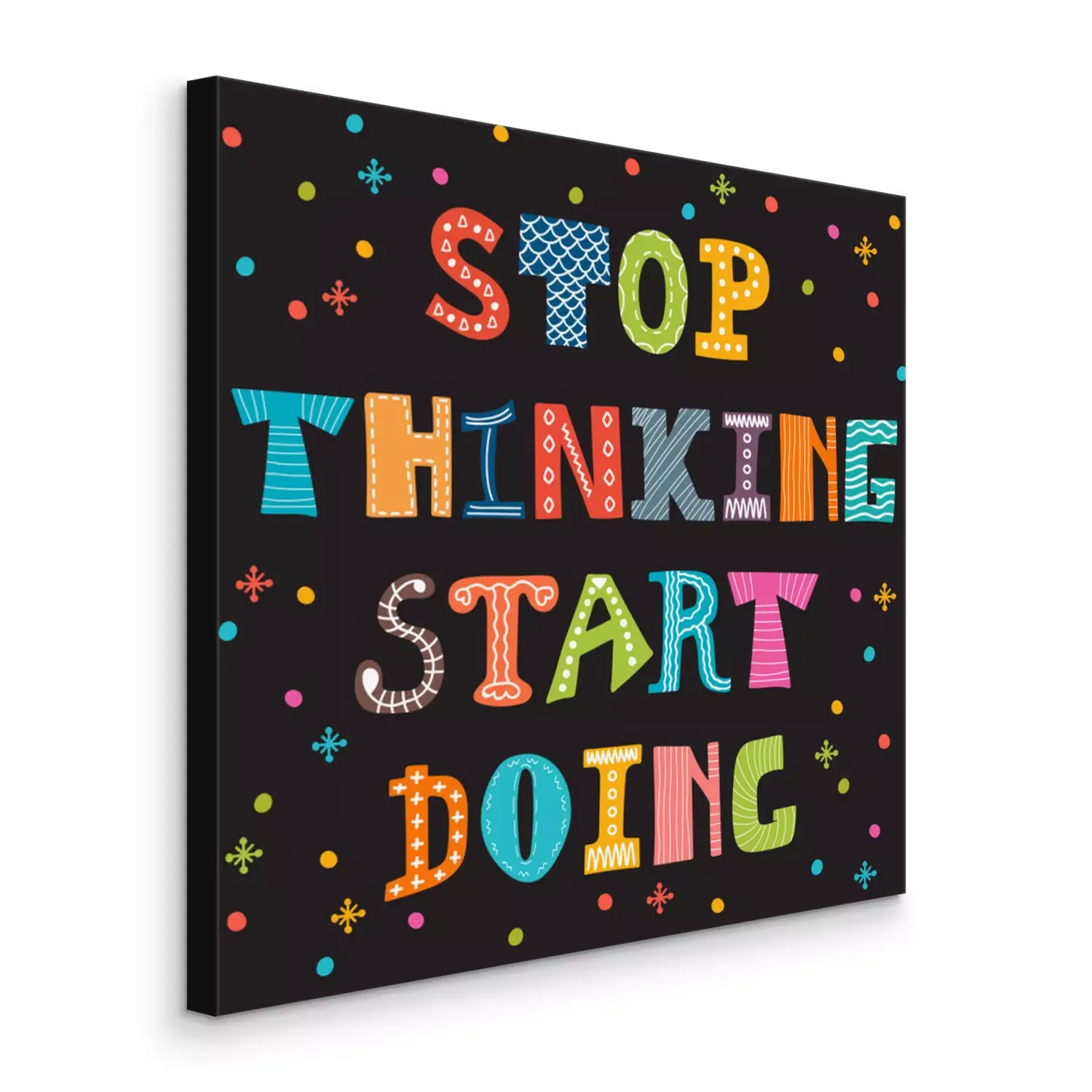Canvas Stoppen met denken gaan doen. Inspirational citaat. Motivatie cut