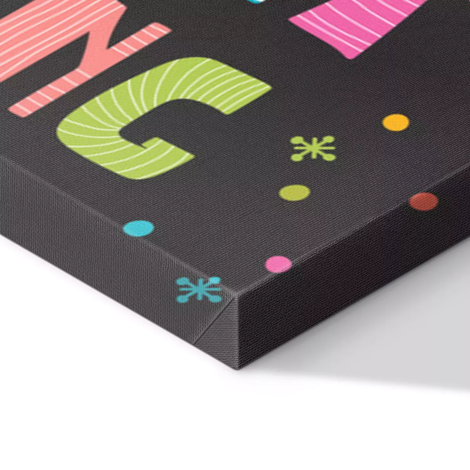 De print wordt aangebracht op hoogwaardig canvas dat op een schildersweefgetouw (spieraam) wordt gespannen. Omdat de print de zijranden bedekt, hoeft het ontwerp niet met een extra kader te worden omlijst. Wij raden ook composities aan die uit meerdere foto's bestaan en zo een coherente compositie vormen.