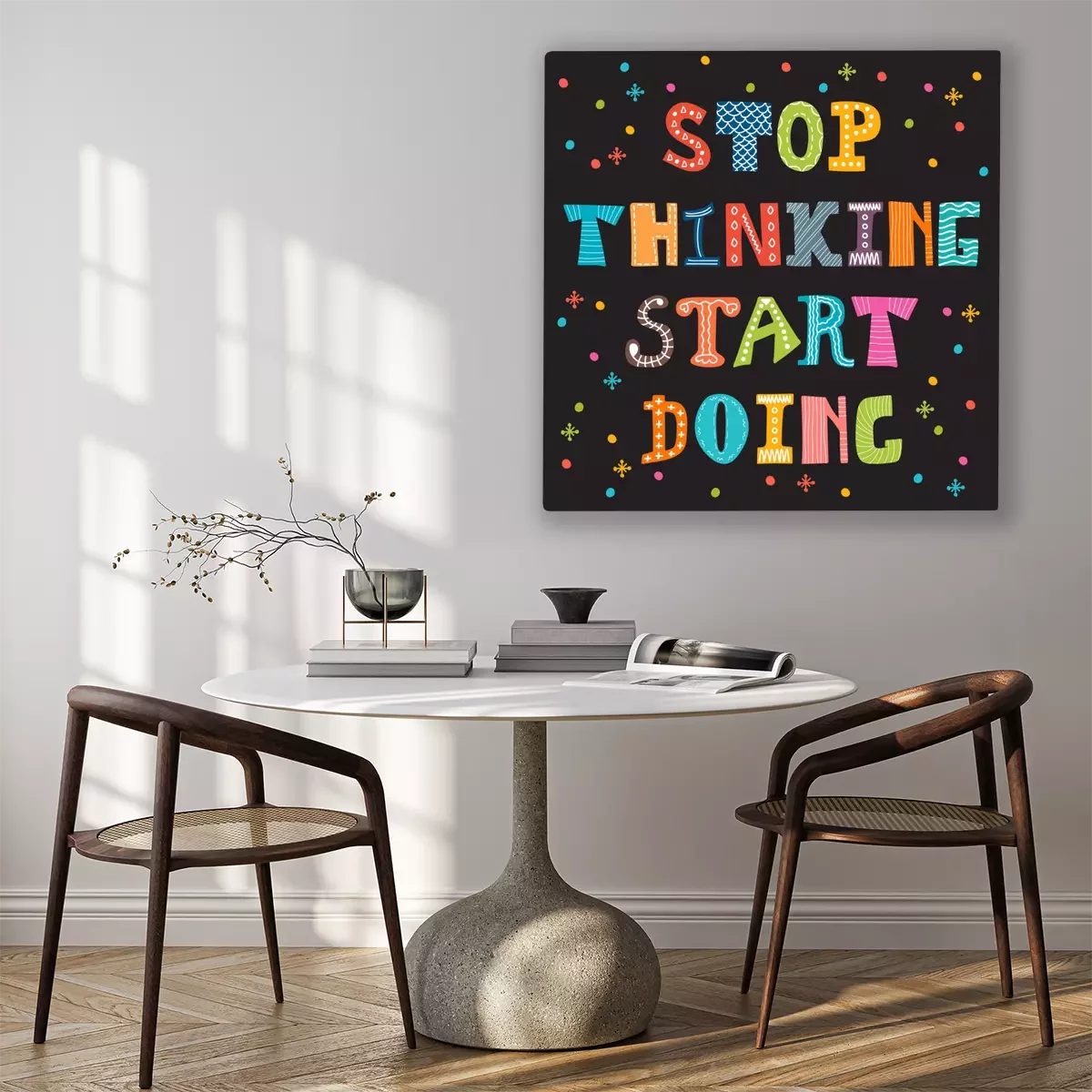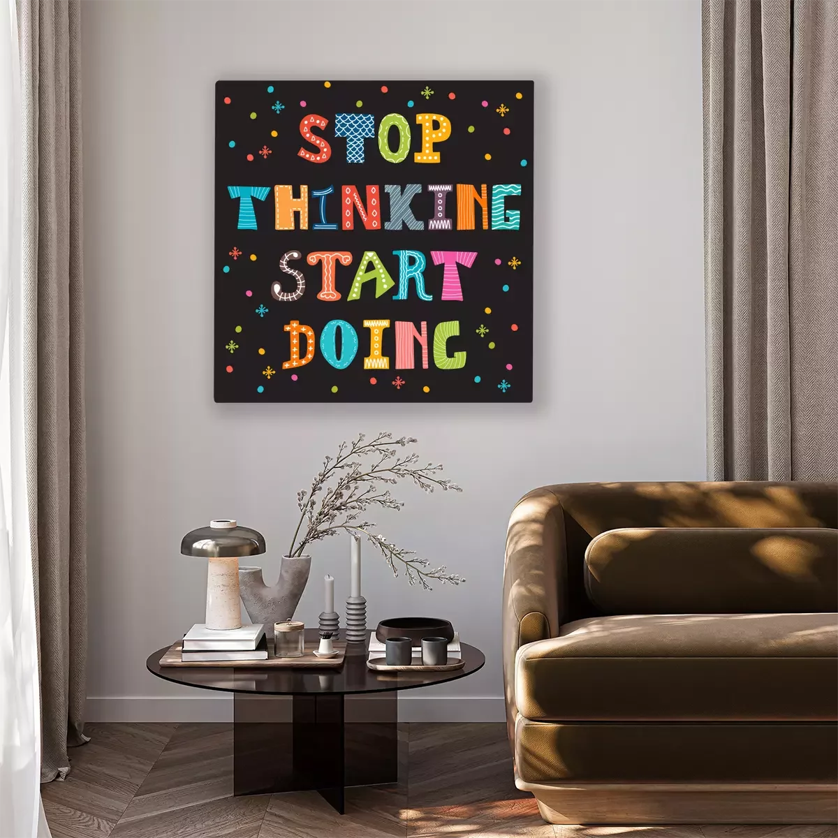 Canvas: Stoppen met denken gaan doen. Inspirational citaat. Motivatie cut