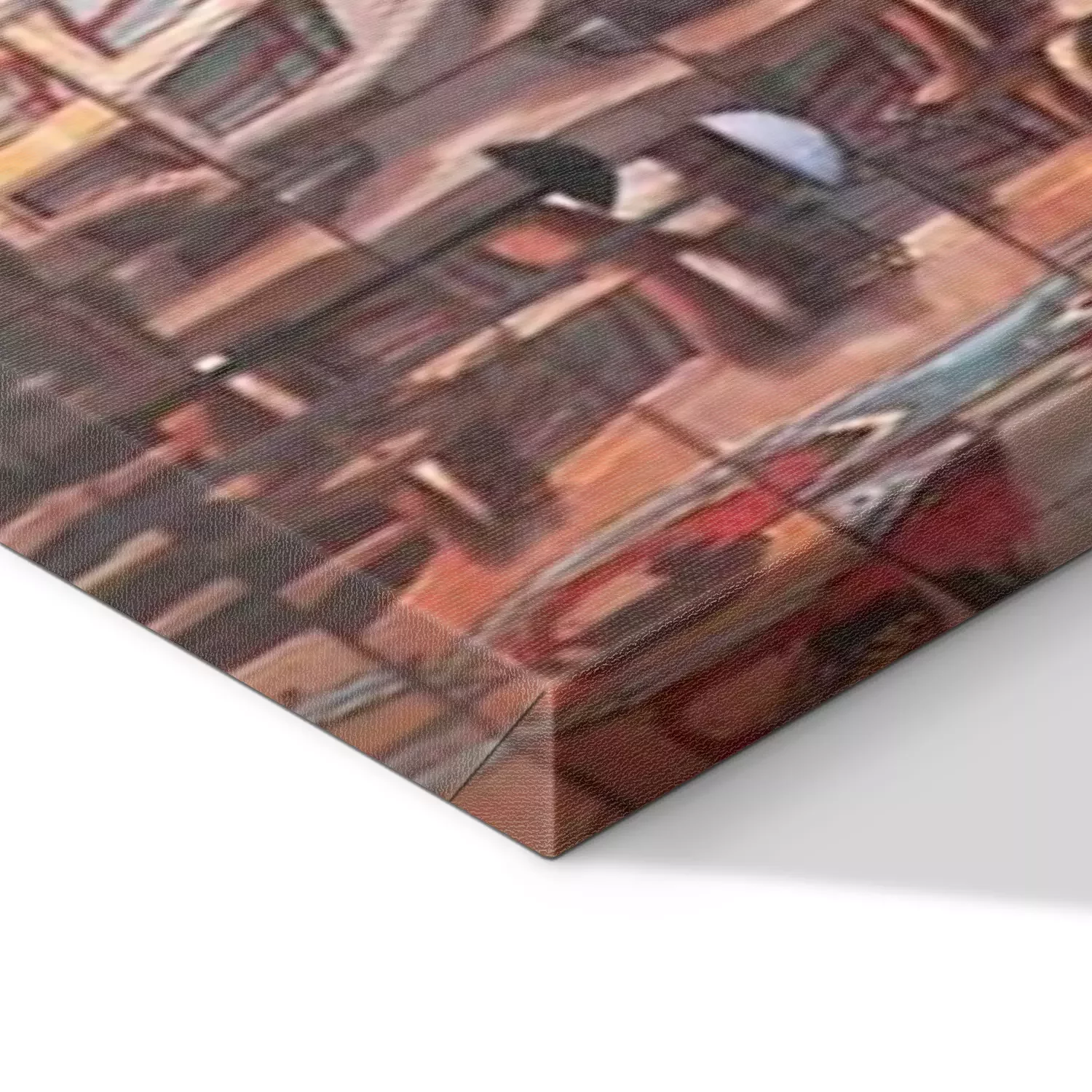 De print wordt aangebracht op hoogwaardig canvas dat op een schildersweefgetouw (spieraam) wordt gespannen. Omdat de print de zijranden bedekt, hoeft het ontwerp niet met een extra kader te worden omlijst. Wij raden ook composities aan die uit meerdere foto's bestaan en zo een coherente compositie vormen.