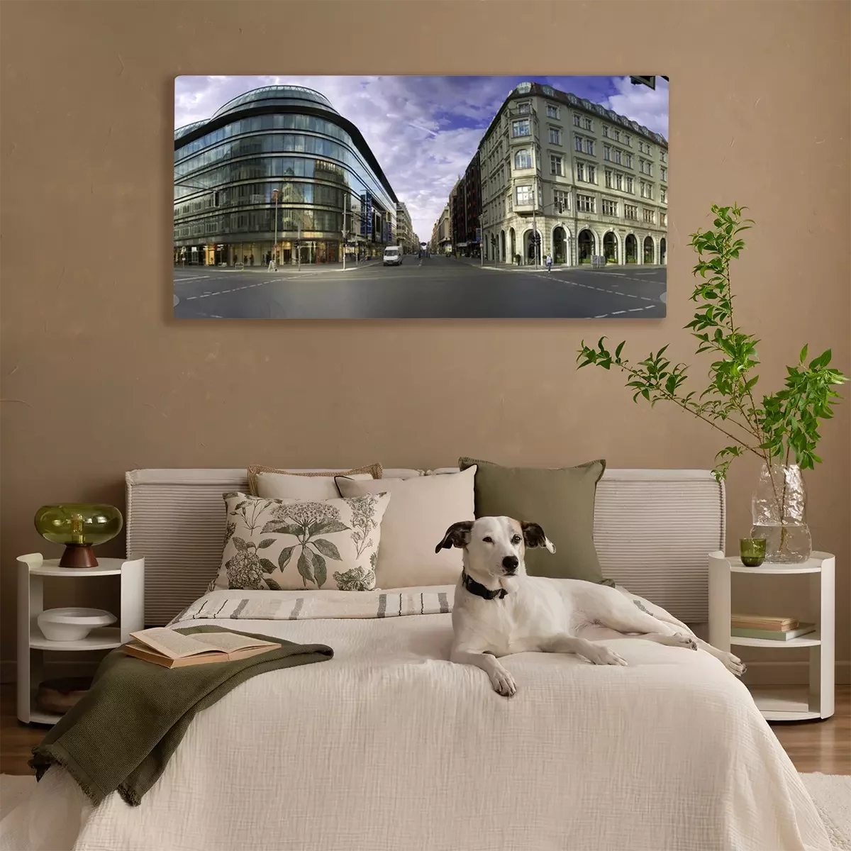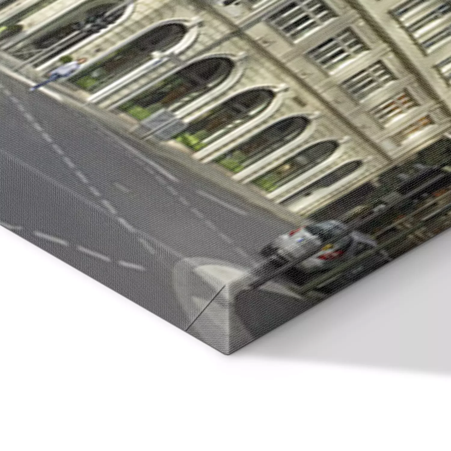 De print wordt aangebracht op hoogwaardig canvas dat op een schildersweefgetouw (spieraam) wordt gespannen. Omdat de print de zijranden bedekt, hoeft het ontwerp niet met een extra kader te worden omlijst. Wij raden ook composities aan die uit meerdere foto's bestaan en zo een coherente compositie vormen.