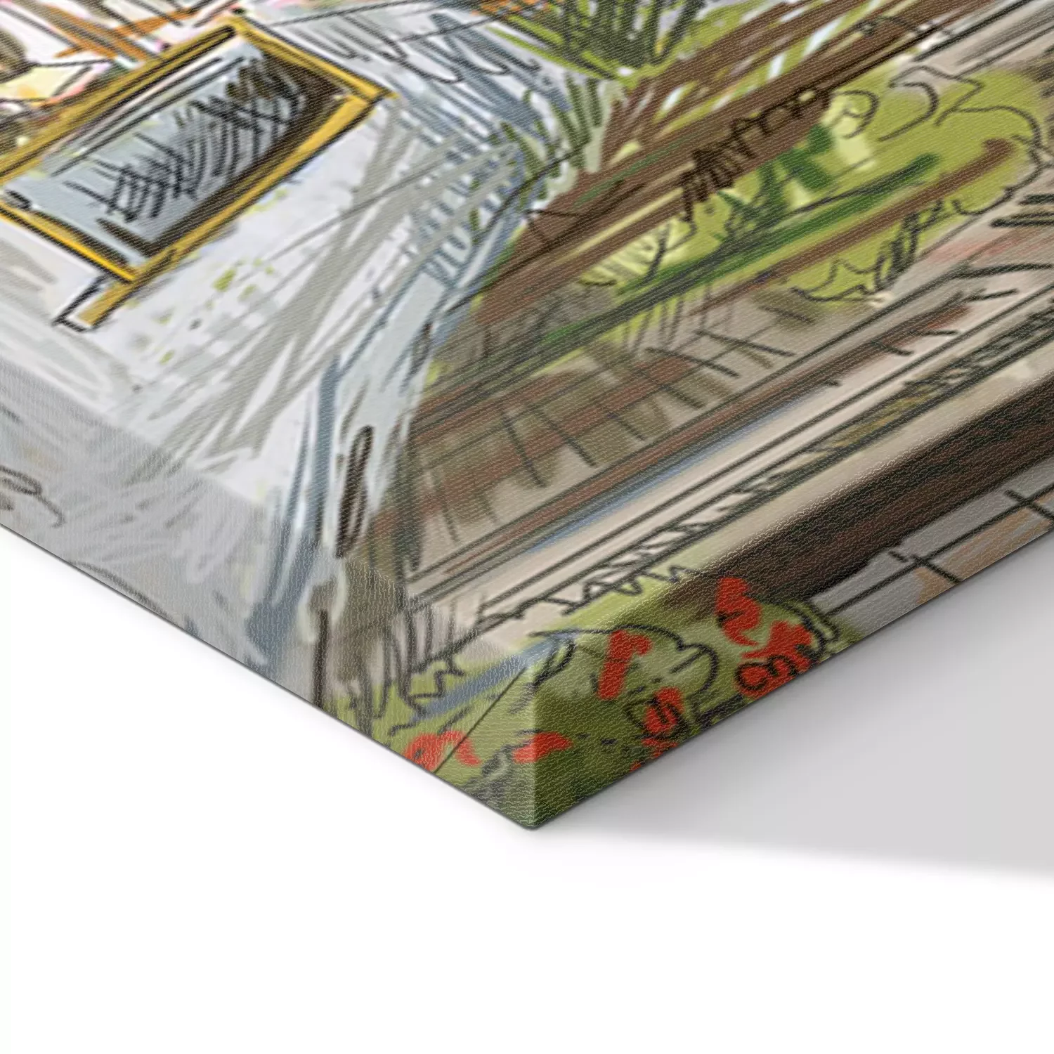 De print wordt aangebracht op hoogwaardig canvas dat op een schildersweefgetouw (spieraam) wordt gespannen. Omdat de print de zijranden bedekt, hoeft het ontwerp niet met een extra kader te worden omlijst. Wij raden ook composities aan die uit meerdere foto's bestaan en zo een coherente compositie vormen.