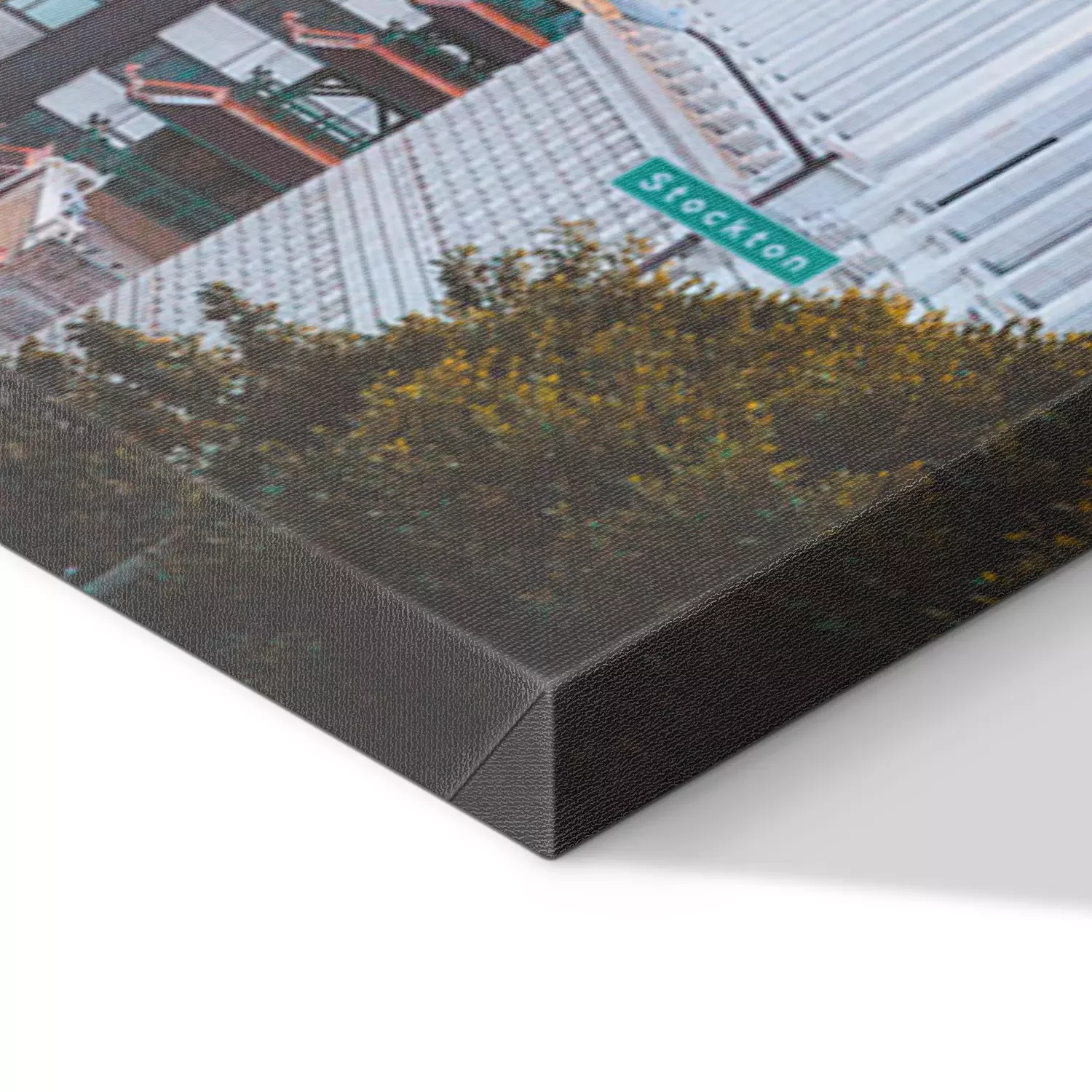 De print wordt aangebracht op hoogwaardig canvas dat op een schildersweefgetouw (spieraam) wordt gespannen. Omdat de print de zijranden bedekt, hoeft het ontwerp niet met een extra kader te worden omlijst. Wij raden ook composities aan die uit meerdere foto's bestaan en zo een coherente compositie vormen.