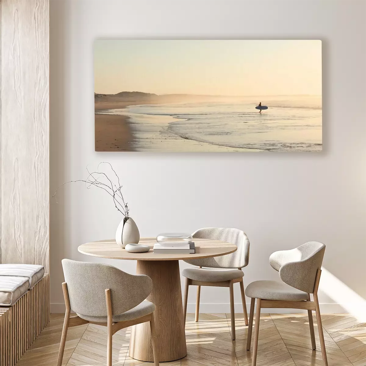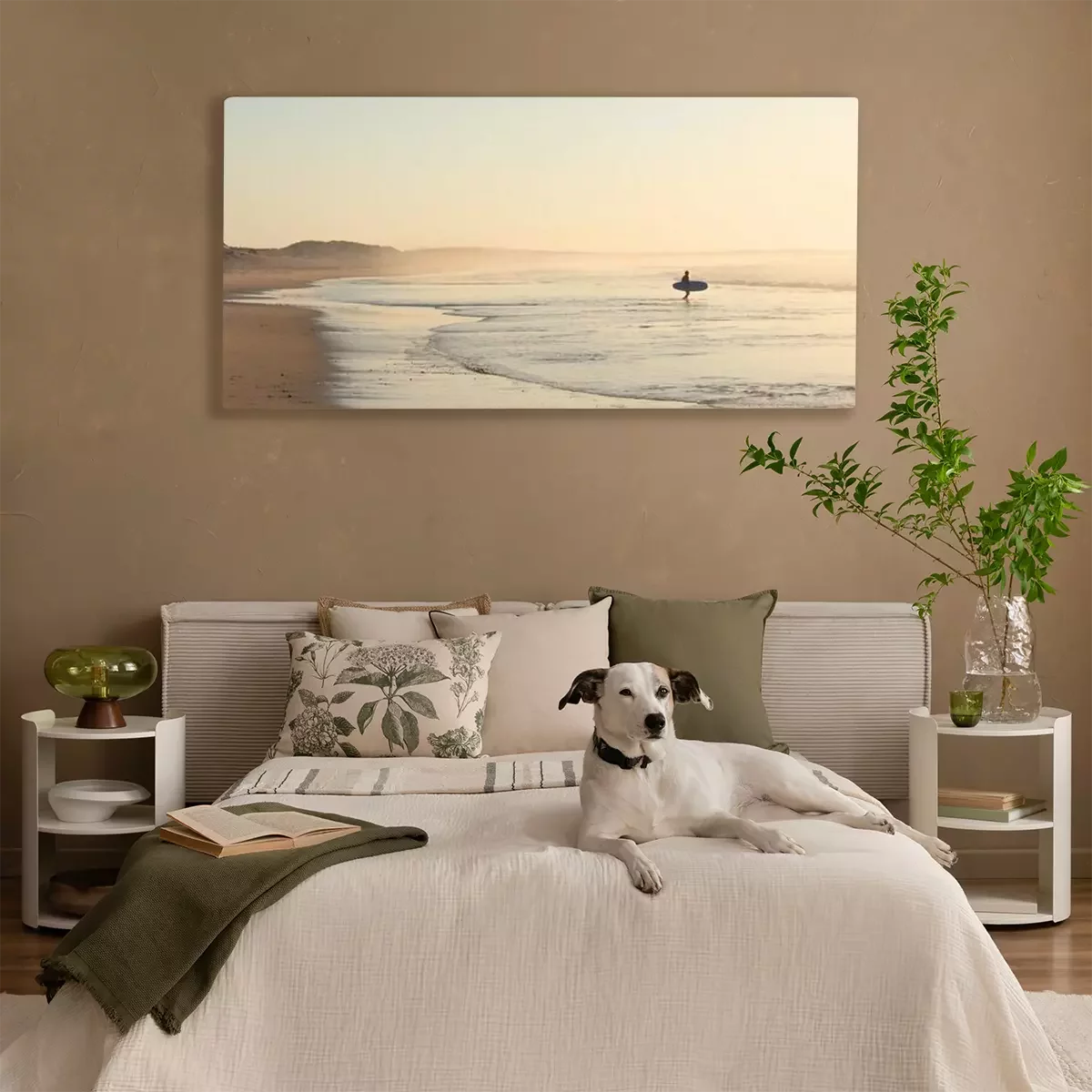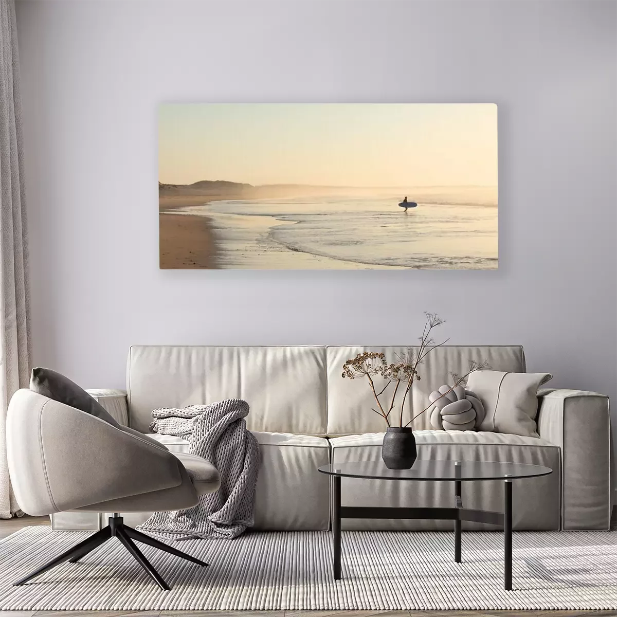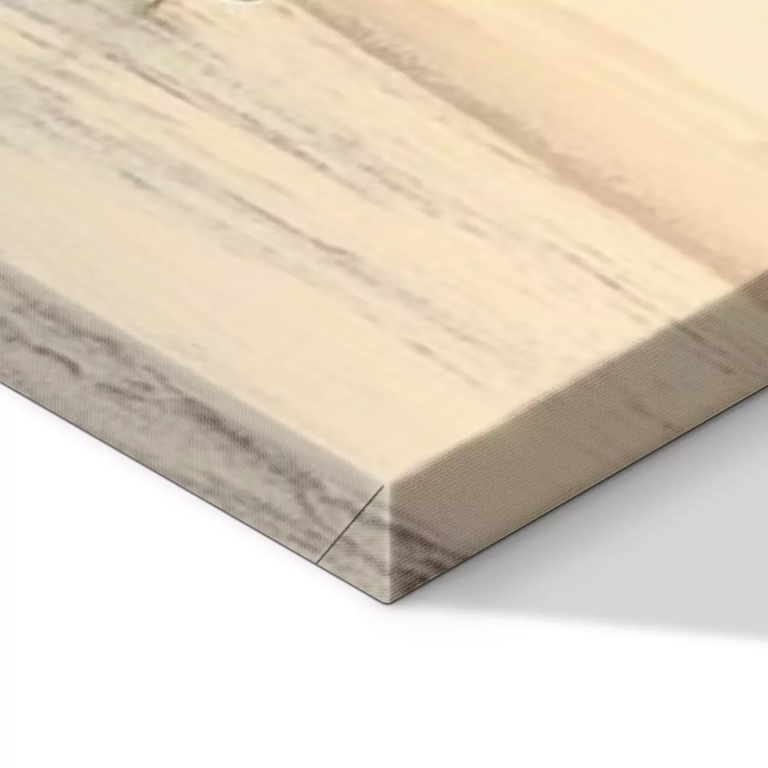 De print wordt aangebracht op hoogwaardig canvas dat op een schildersweefgetouw (spieraam) wordt gespannen. Omdat de print de zijranden bedekt, hoeft het ontwerp niet met een extra kader te worden omlijst. Wij raden ook composities aan die uit meerdere foto's bestaan en zo een coherente compositie vormen.