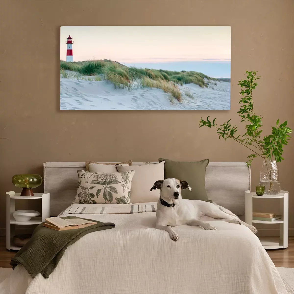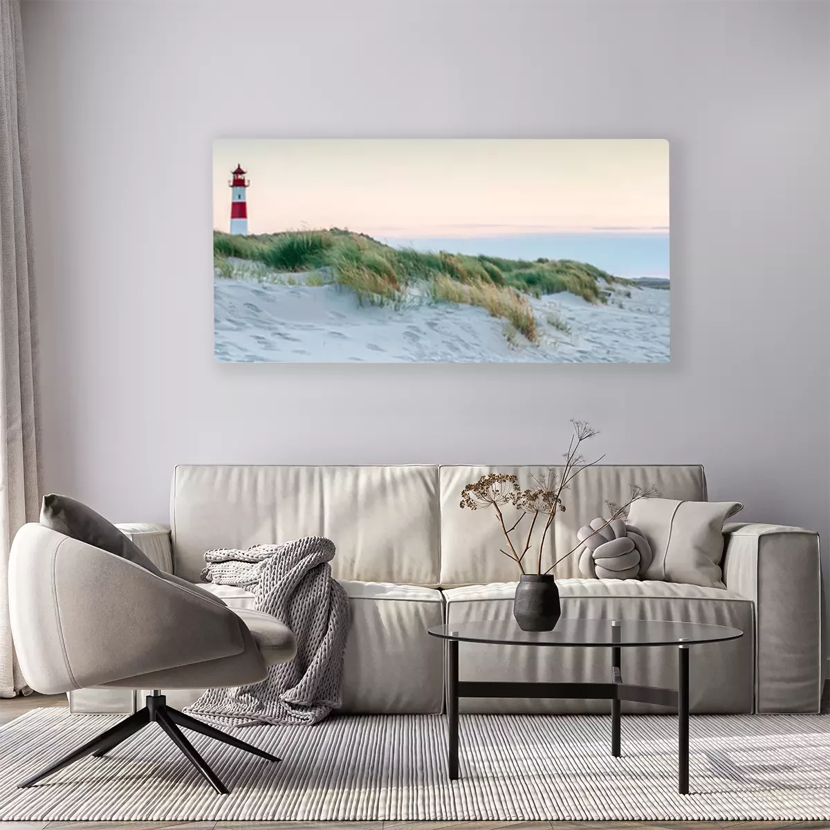De print wordt aangebracht op hoogwaardig canvas dat op een schildersweefgetouw (spieraam) wordt gespannen. Omdat de print de zijranden bedekt, hoeft het ontwerp niet met een extra kader te worden omlijst. Wij raden ook composities aan die uit meerdere foto's bestaan en zo een coherente compositie vormen.