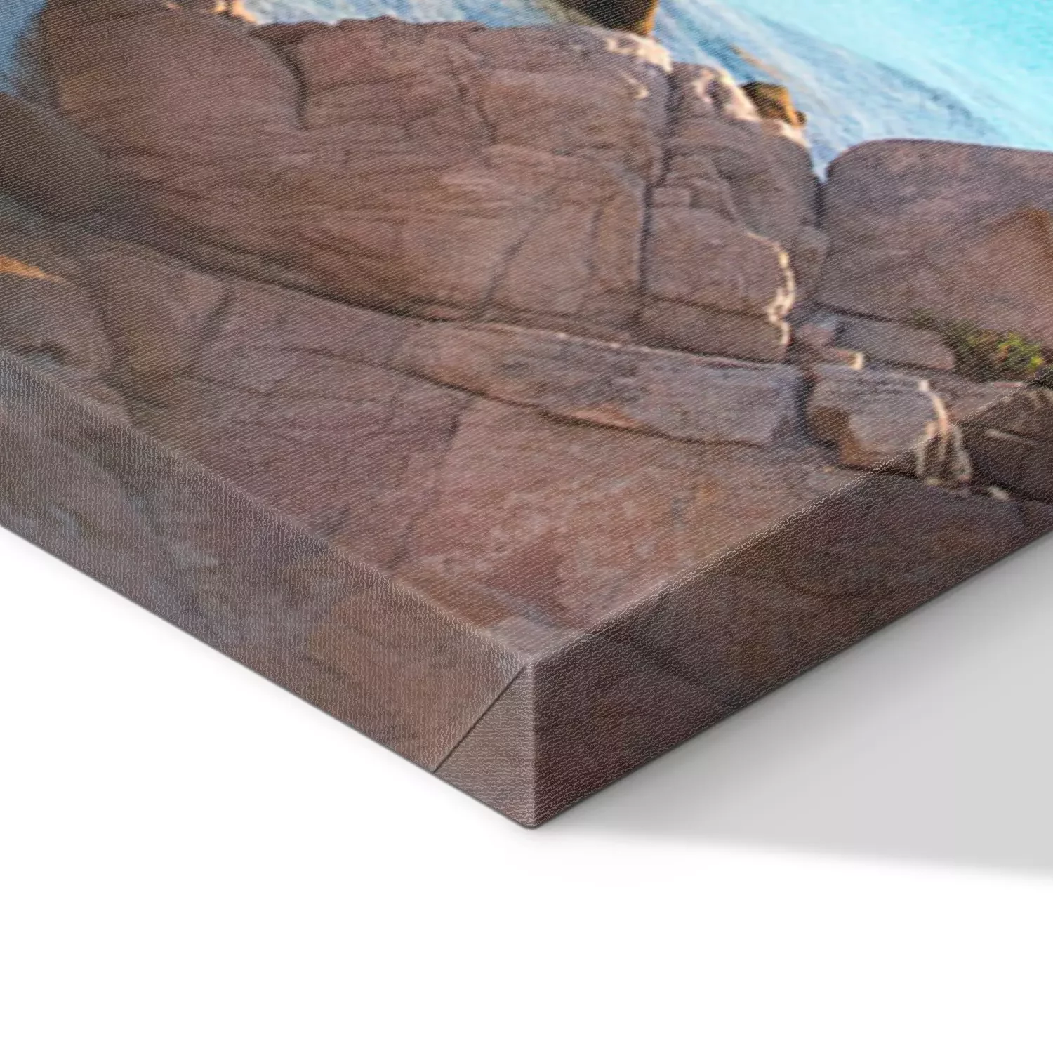 De print wordt aangebracht op hoogwaardig canvas dat op een schildersweefgetouw (spieraam) wordt gespannen. Omdat de print de zijranden bedekt, hoeft het ontwerp niet met een extra kader te worden omlijst. Wij raden ook composities aan die uit meerdere foto's bestaan en zo een coherente compositie vormen.