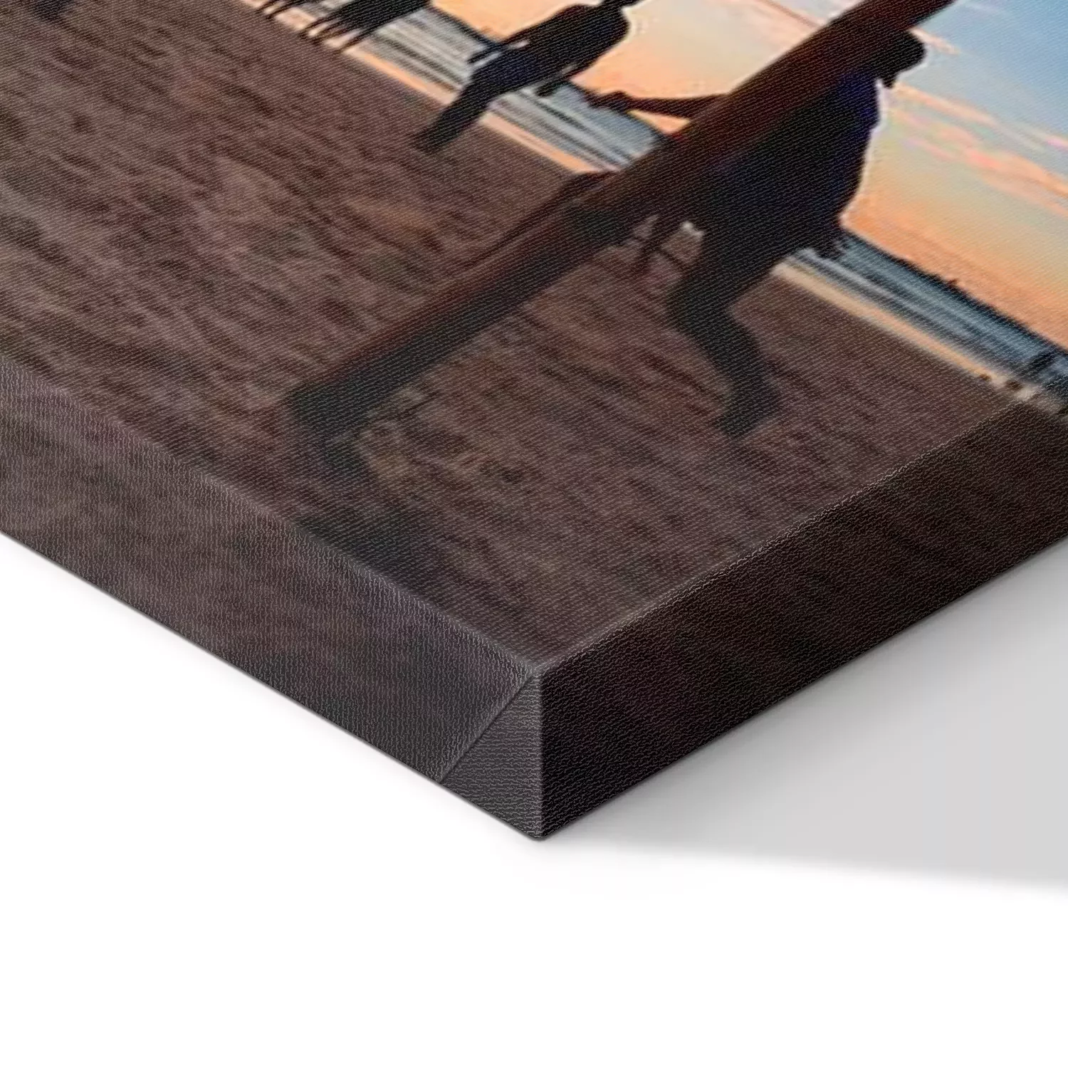 De print wordt aangebracht op hoogwaardig canvas dat op een schildersweefgetouw (spieraam) wordt gespannen. Omdat de print de zijranden bedekt, hoeft het ontwerp niet met een extra kader te worden omlijst. Wij raden ook composities aan die uit meerdere foto's bestaan en zo een coherente compositie vormen.