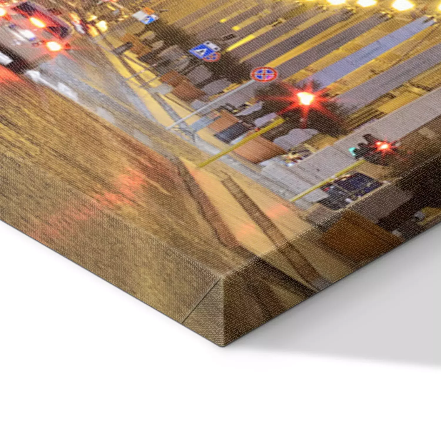 De print wordt aangebracht op hoogwaardig canvas dat op een schildersweefgetouw (spieraam) wordt gespannen. Omdat de print de zijranden bedekt, hoeft het ontwerp niet met een extra kader te worden omlijst. Wij raden ook composities aan die uit meerdere foto's bestaan en zo een coherente compositie vormen.