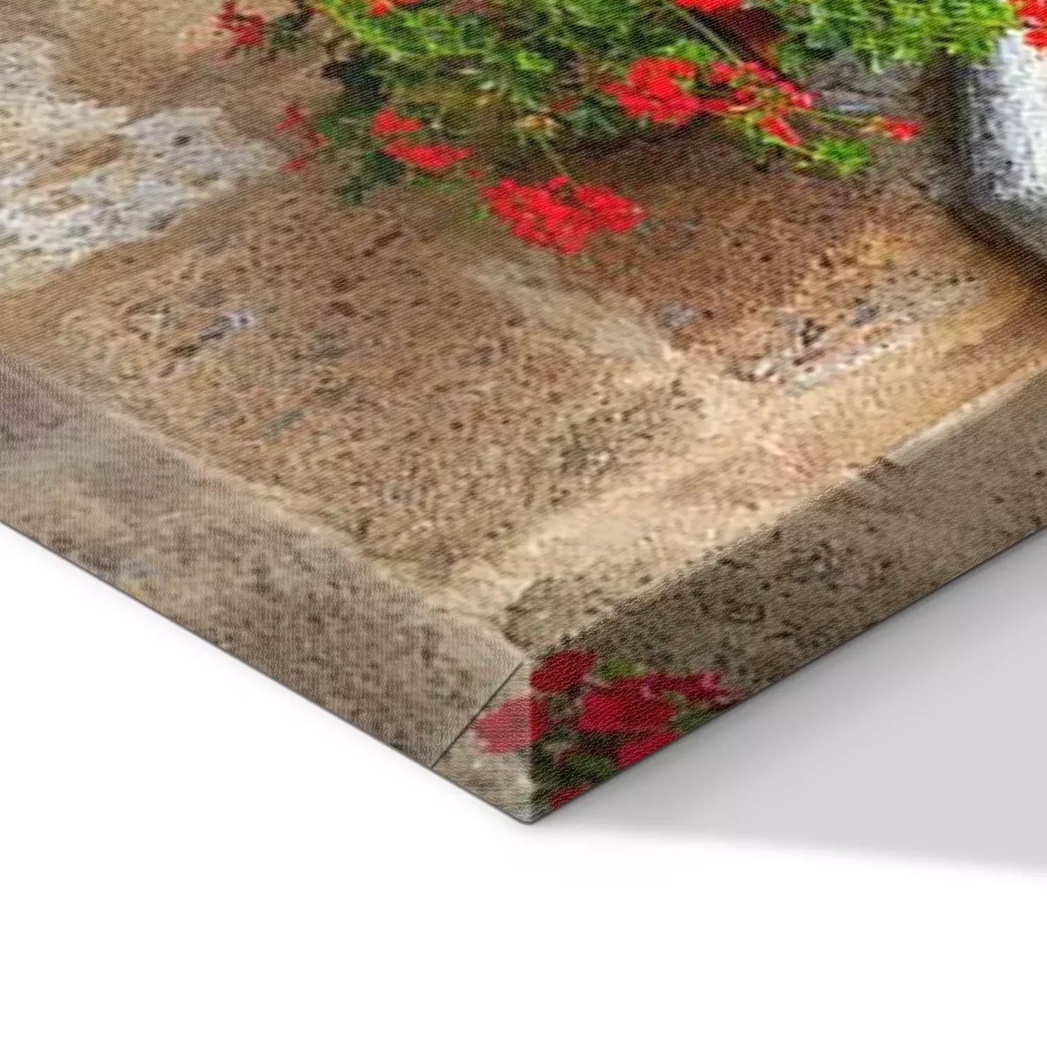 De print wordt aangebracht op hoogwaardig canvas dat op een schildersweefgetouw (spieraam) wordt gespannen. Omdat de print de zijranden bedekt, hoeft het ontwerp niet met een extra kader te worden omlijst. Wij raden ook composities aan die uit meerdere foto's bestaan en zo een coherente compositie vormen.
