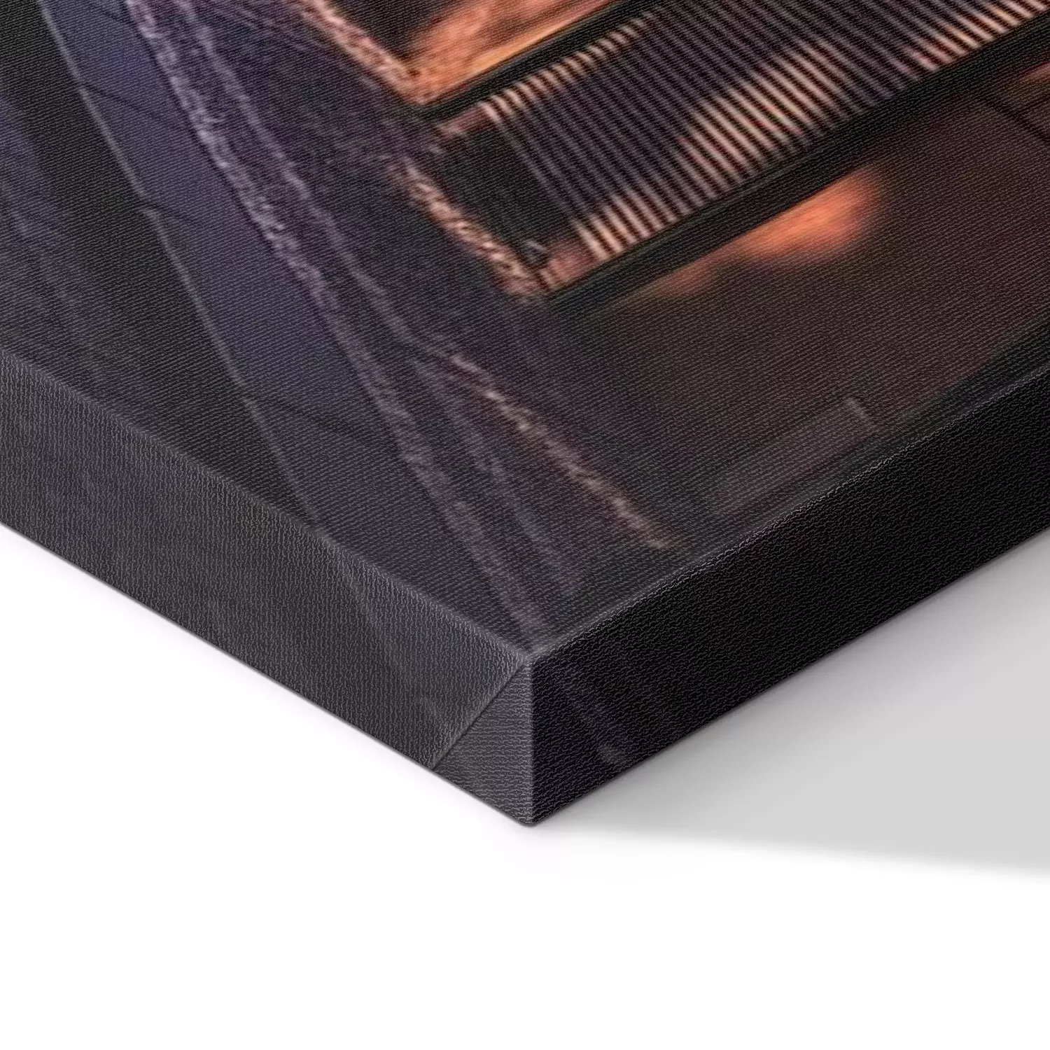 De print wordt aangebracht op hoogwaardig canvas dat op een schildersweefgetouw (spieraam) wordt gespannen. Omdat de print de zijranden bedekt, hoeft het ontwerp niet met een extra kader te worden omlijst. Wij raden ook composities aan die uit meerdere foto's bestaan en zo een coherente compositie vormen.