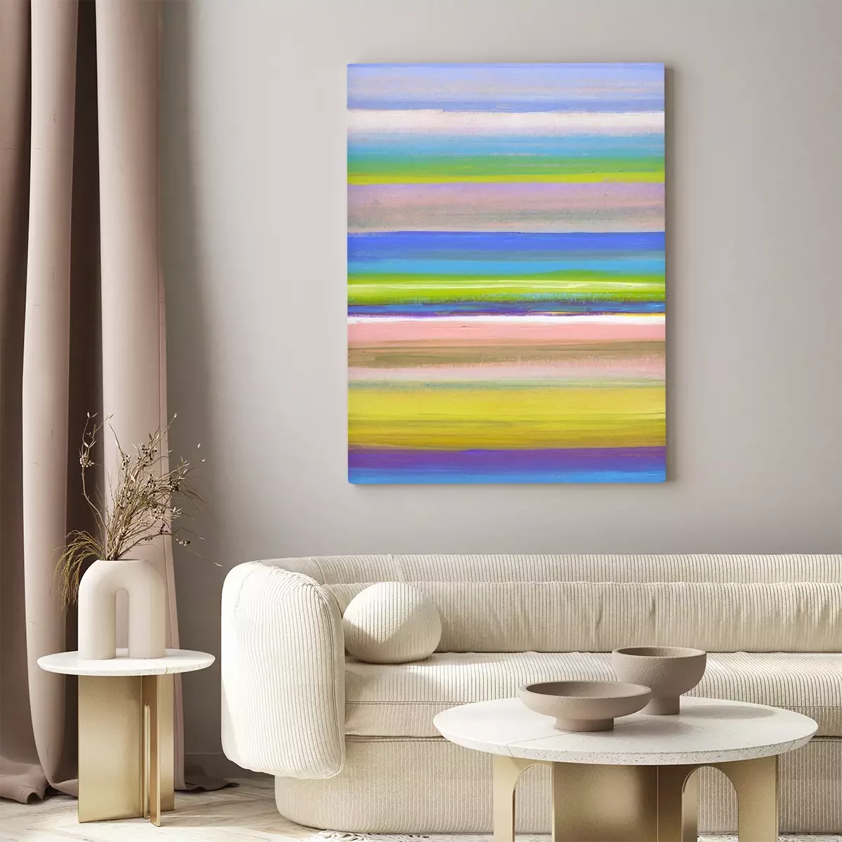 De print wordt aangebracht op hoogwaardig canvas dat op een schildersweefgetouw (spieraam) wordt gespannen. Omdat de print de zijranden bedekt, hoeft het ontwerp niet met een extra kader te worden omlijst. Wij raden ook composities aan die uit meerdere foto's bestaan en zo een coherente compositie vormen.