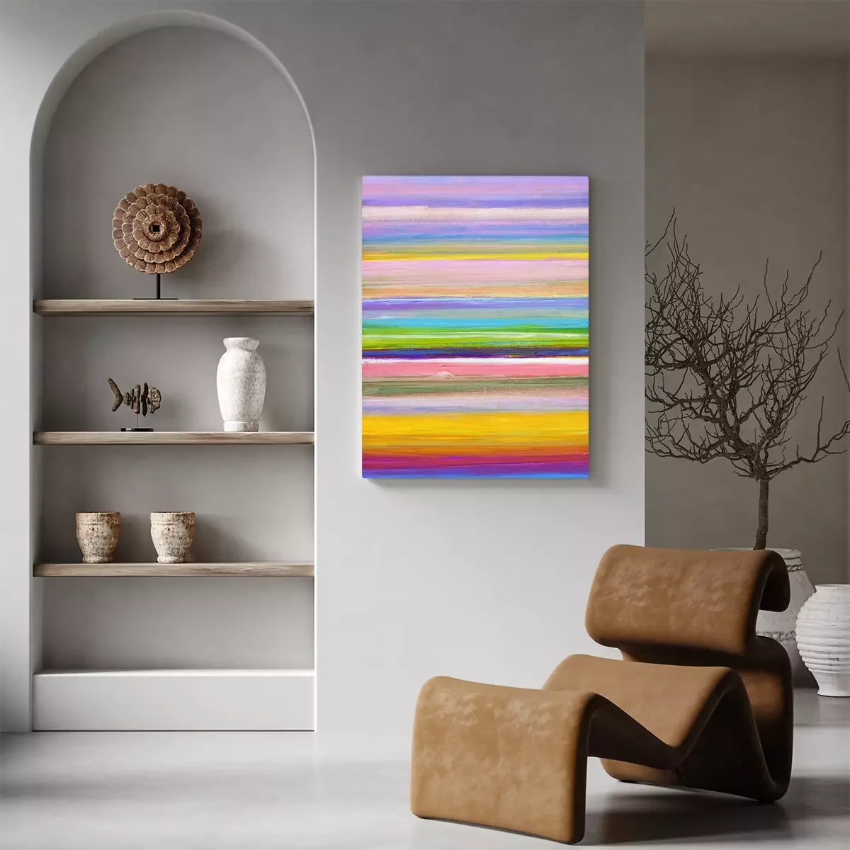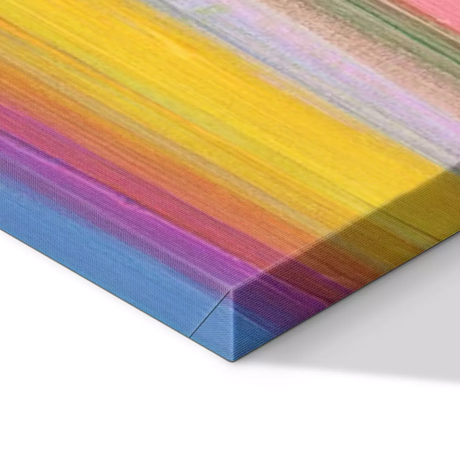De print wordt aangebracht op hoogwaardig canvas dat op een schildersweefgetouw (spieraam) wordt gespannen. Omdat de print de zijranden bedekt, hoeft het ontwerp niet met een extra kader te worden omlijst. Wij raden ook composities aan die uit meerdere foto's bestaan en zo een coherente compositie vormen.