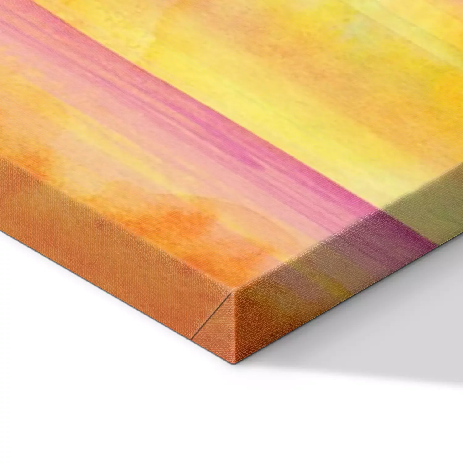 De print wordt aangebracht op hoogwaardig canvas dat op een schildersweefgetouw (spieraam) wordt gespannen. Omdat de print de zijranden bedekt, hoeft het ontwerp niet met een extra kader te worden omlijst. Wij raden ook composities aan die uit meerdere foto's bestaan en zo een coherente compositie vormen.