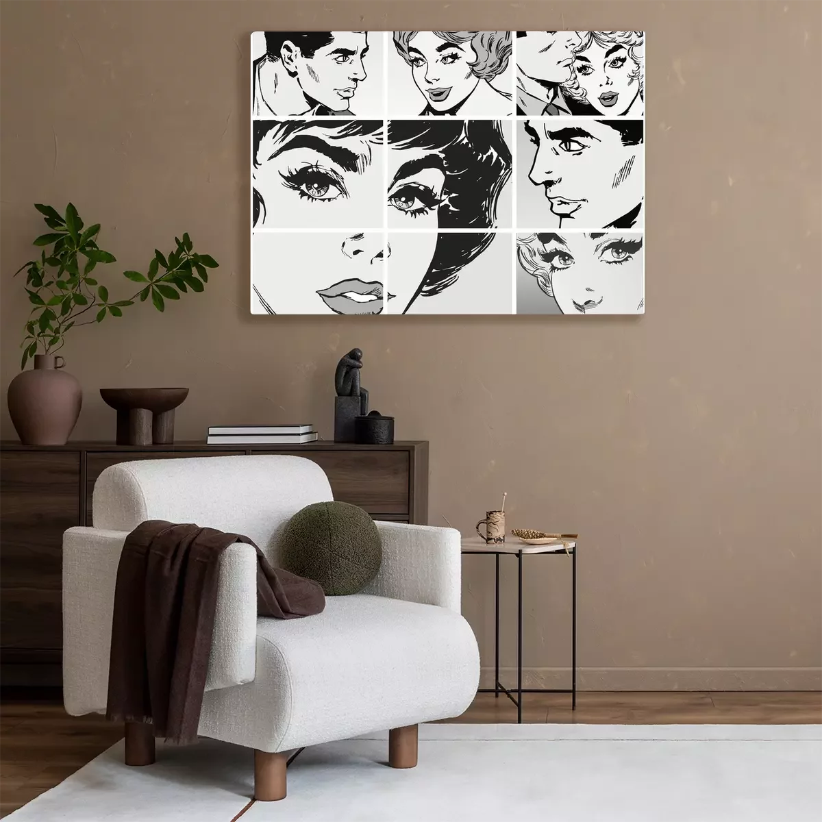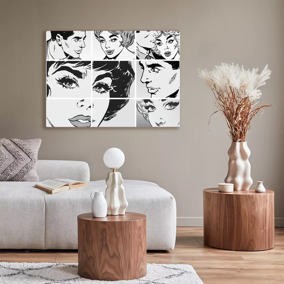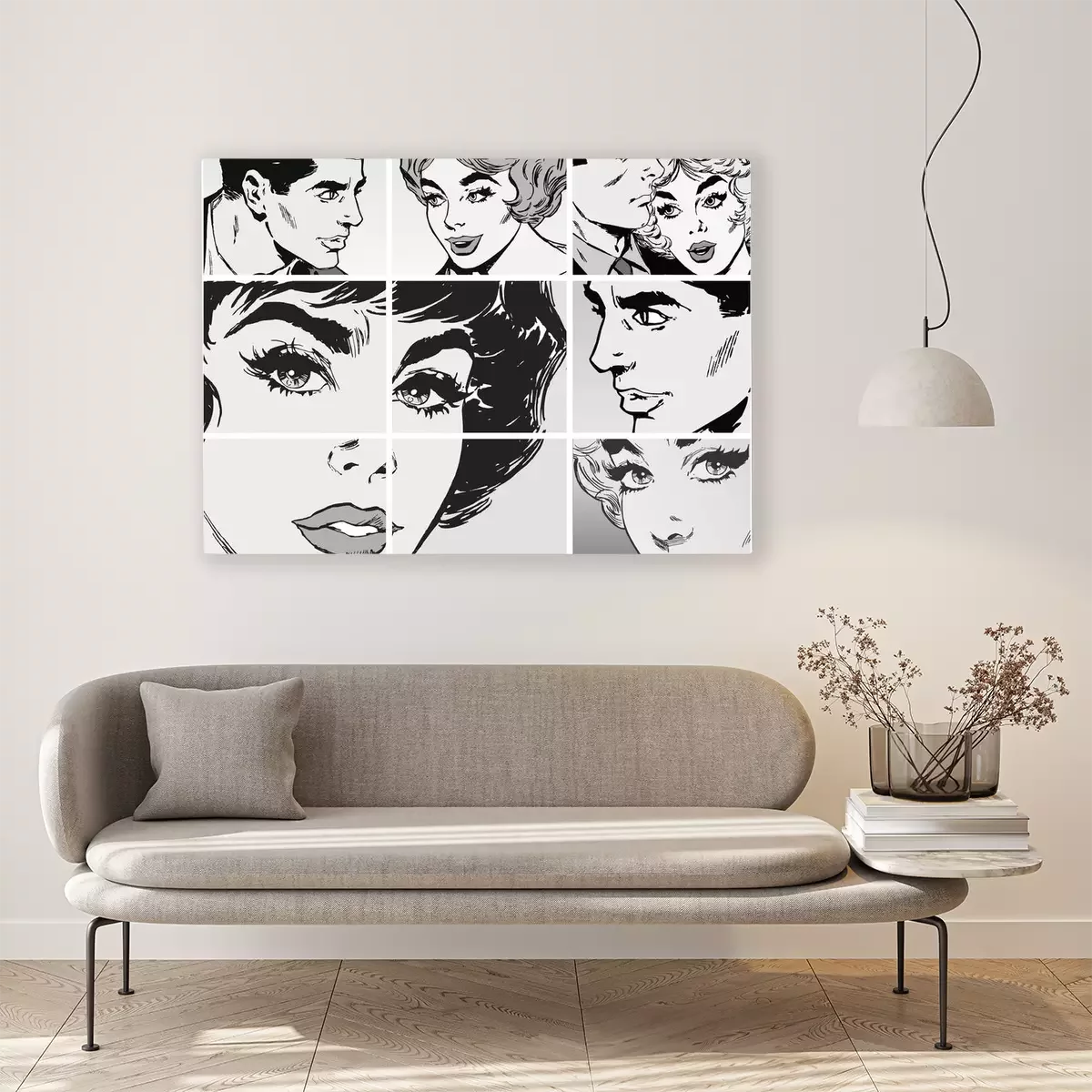 De print wordt aangebracht op hoogwaardig canvas dat op een schildersweefgetouw (spieraam) wordt gespannen. Omdat de print de zijranden bedekt, hoeft het ontwerp niet met een extra kader te worden omlijst. Wij raden ook composities aan die uit meerdere foto's bestaan en zo een coherente compositie vormen.